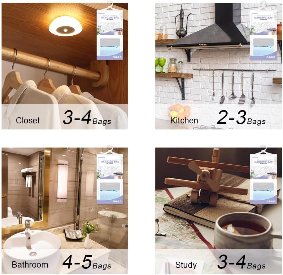 • 【Widely used】CANAGER dehumidifier bags have strong hook design, are suitable for most enclosed spaces, such as closets,basements,cabins,bathrooms,garages,laundry rooms and other enclosed spaces. Effectively protect your clothes and valuables from moisture.is perfect dehumidifier for closet,bedroom,kitchen,bathroom.