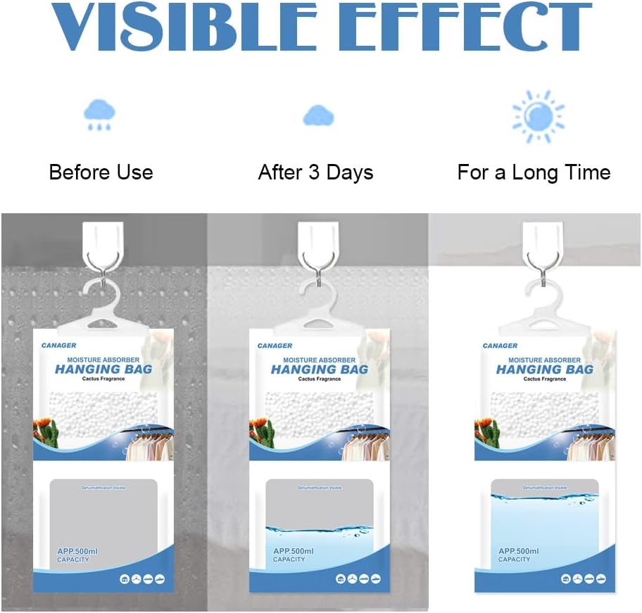 CANAGER Hanging Moisture Absorber, Cactus Fragrance Moistureproof Hanging Bag, Dehumidifier Bag (8 packs) Hanging Closet Dehumidifier Bags, Moisture Absorb 12.5 oz.