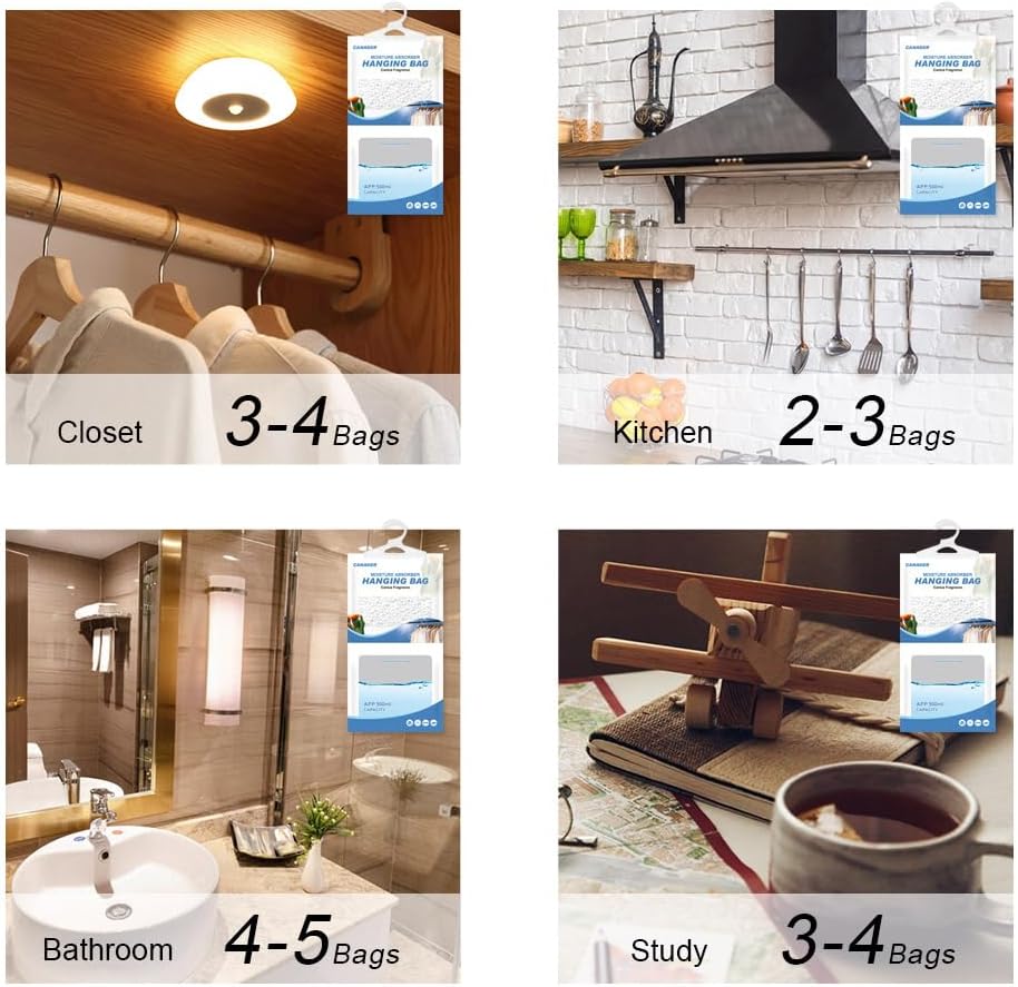 • 【Widely used】CANAGER dehumidifier bags have strong hook design, are suitable for most enclosed spaces, such as closets,basements,cabins,bathrooms,garages,laundry rooms and other enclosed spaces. Effectively protect your clothes and valuables from moisture.is perfect dehumidifier for closet,bedroom,kitchen,bathroom.