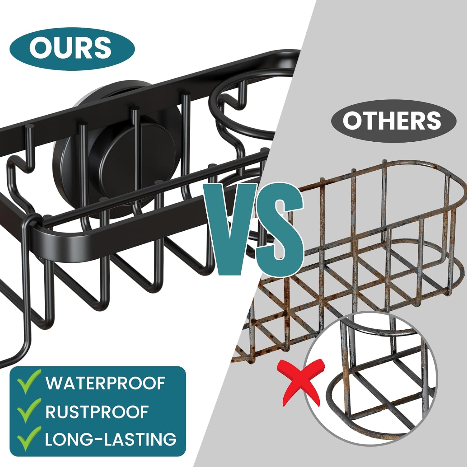 TAILI 4-in-1 Sponge Holder for Kitchen Sink with Strong Suction Cup Removable, Rustproof Aluminum Sink Caddy for Sponge, Brush, Scrubber, Scraper -Black