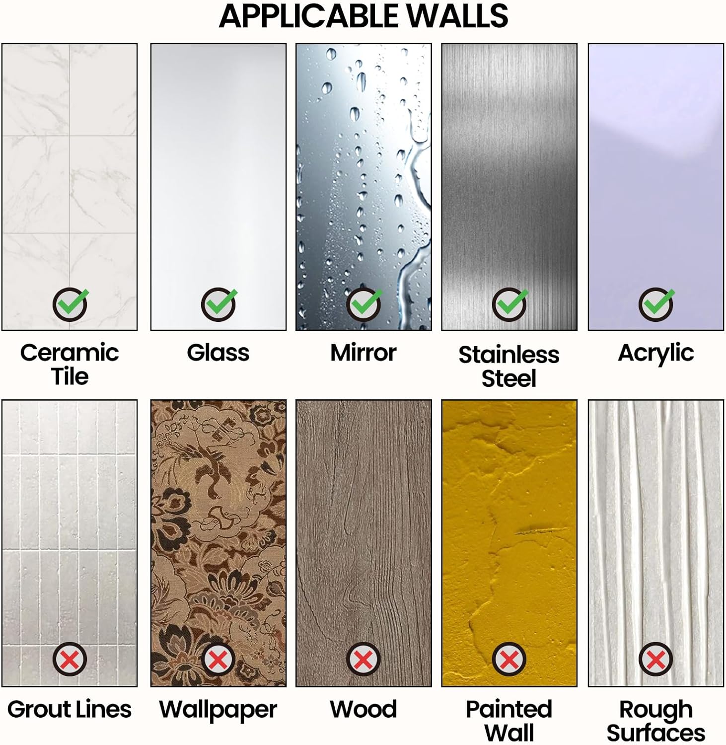 • [Troubleshooting Tips]: If problems occur during installation, how can I quickly determine whether the problem is with the product or with the wall surface? Ensure that the suction cup is clean and dry, then install the shower mirror on a smooth, clean and dry glass surface. If the sponge holder can be installed well to the glass, this means that the initial installation wall is not suitable for the suction cups. If the sponge holder doesn't work on the glass, it is possible that the protective cover has come off, caused the suction cups to be dusty, so you can clean it and use it again or contact customer service