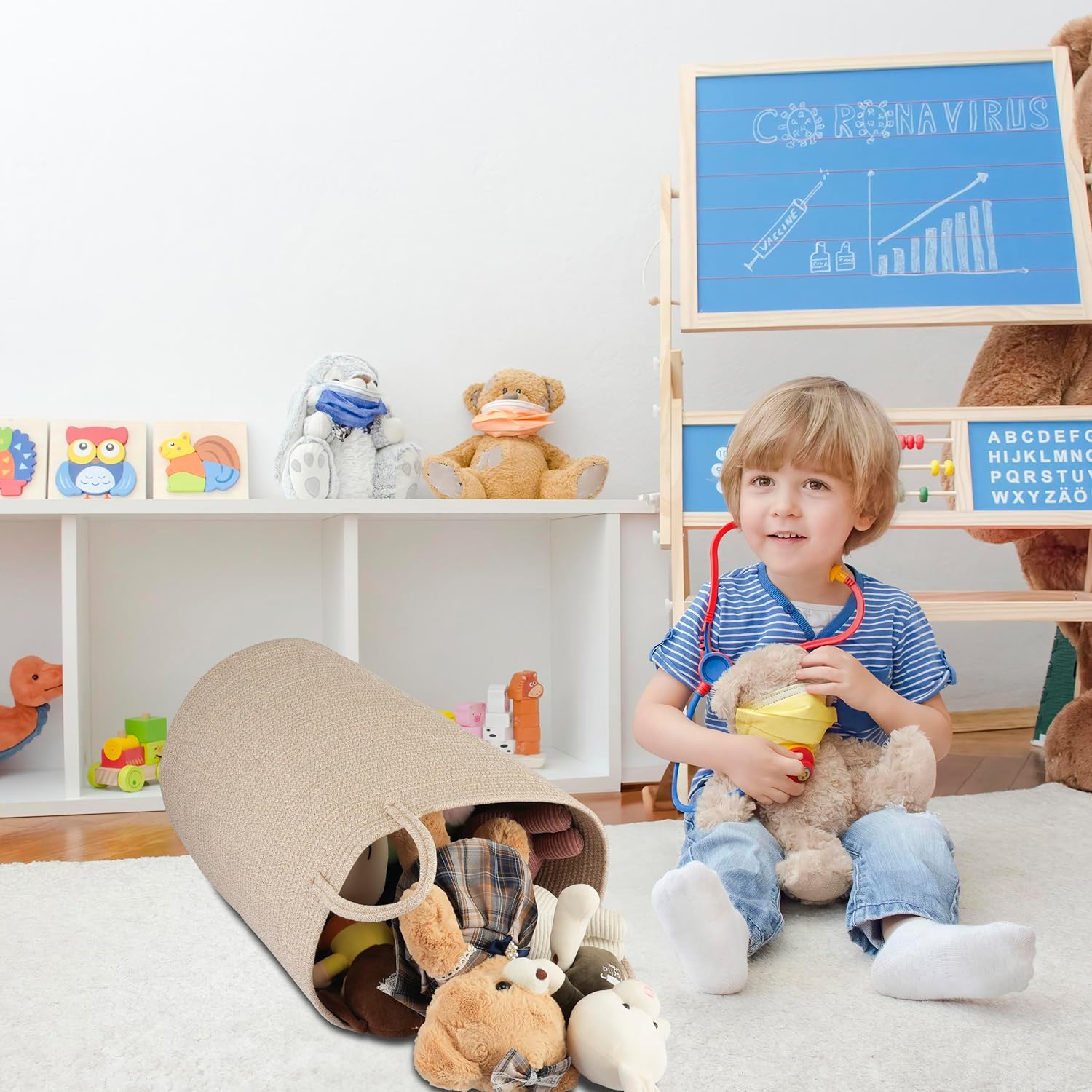 Cotton Rope Laundry Basket Hamper for Clothes Woven Storage Basket for Living Room Bedroom Boho Tall Rope Baskets for Blanket Toys Pillow Towels Baby Nursery Hamper Bin Large oatmeal