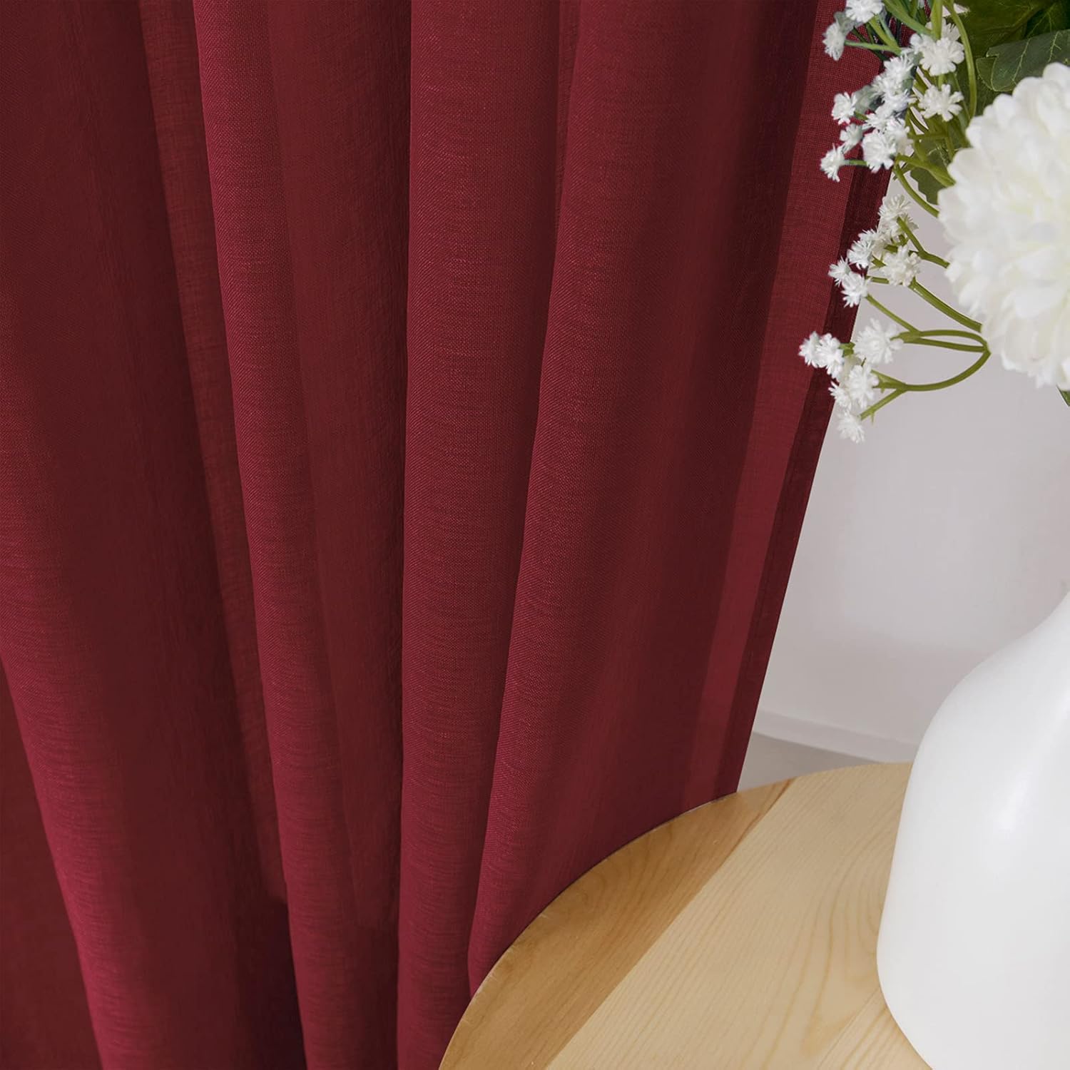 • Light Filtering: The linen look burgundy red sheer curtains can allow the right amount of natural light through to bring your room a hazy and softer vision, keep you away from someone’s glance from outside and provide you some privacy.
