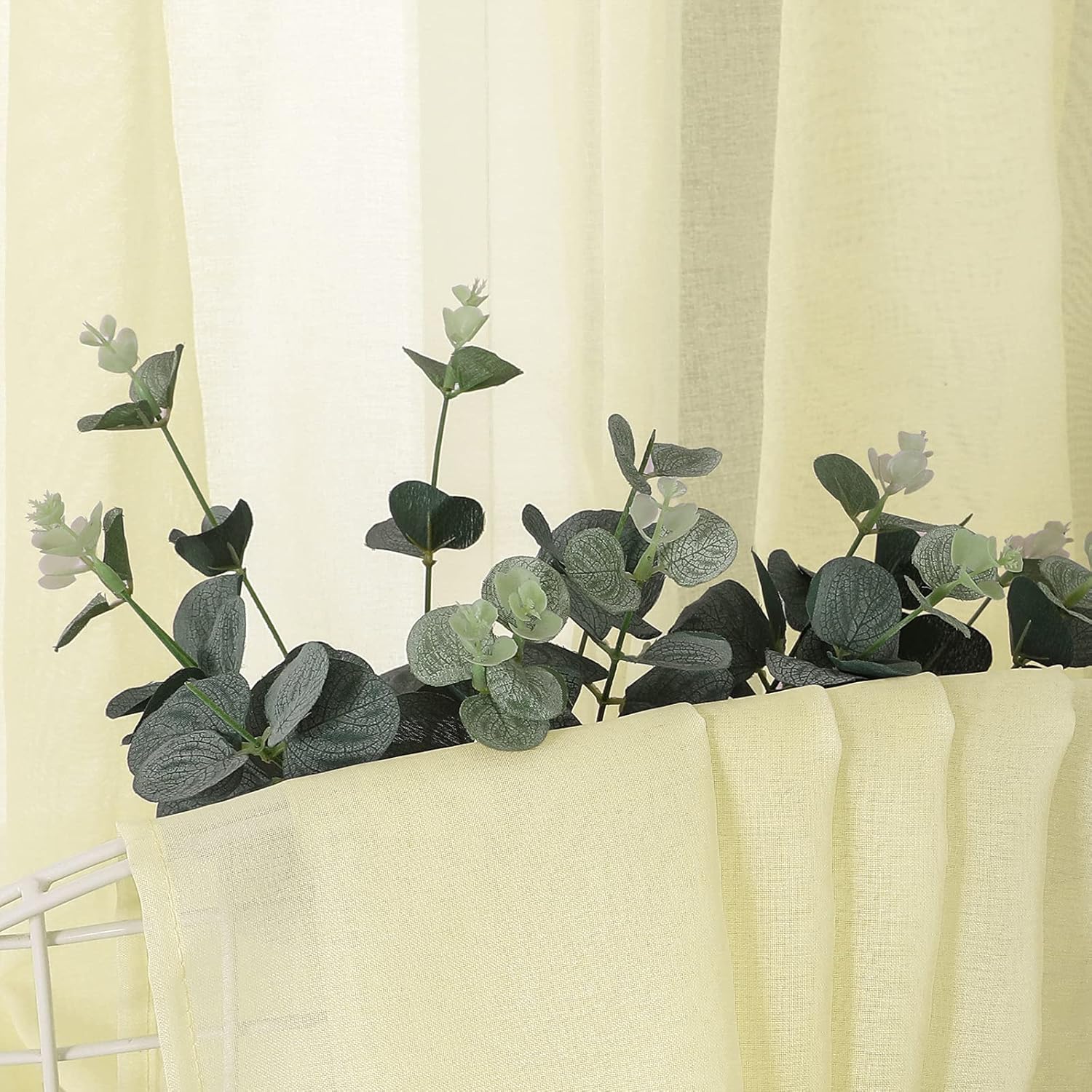 • Light Filtering: The linen look transparent yellow sheer curtains can allow the right amount of natural light through to bring your room a hazy and softer vision, keep you away from someone’s glance from outside and provide you some privacy.