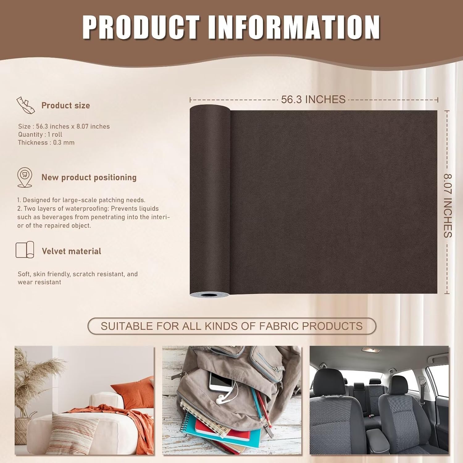 Azobur Couch Patches, Extra-Large Durable Fabric Tape, Ideal for Automotive Upholstery Repair, Waterproof, Self-Adhesive, Quickly Fix Sofas, Car Interiors, and Other Fabric Items (Dark Brown)