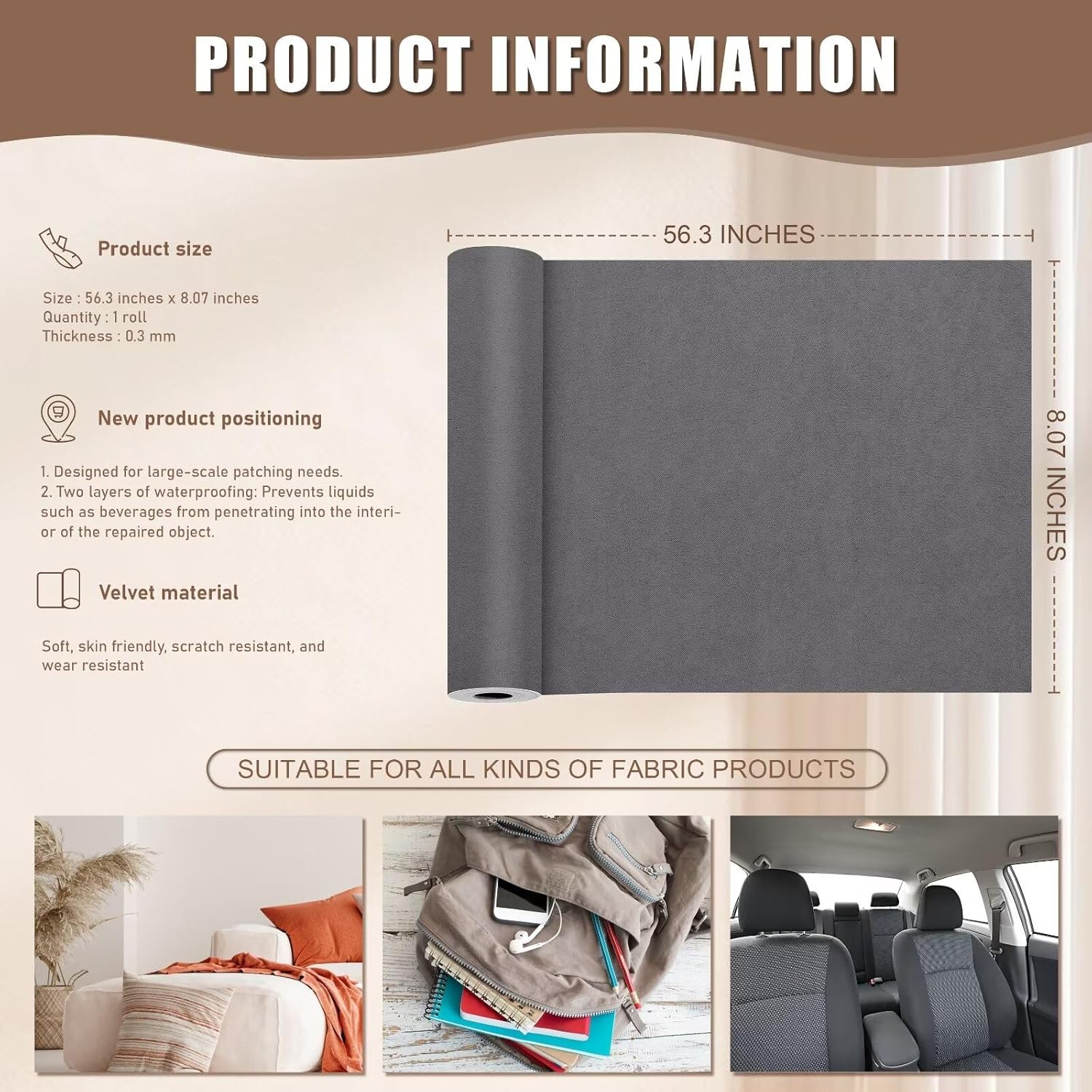 • Extra-Large Size: This microfiber couch repair kit measures 8.07 inches x 56.30 inches, with a thickness of 0.3mm.