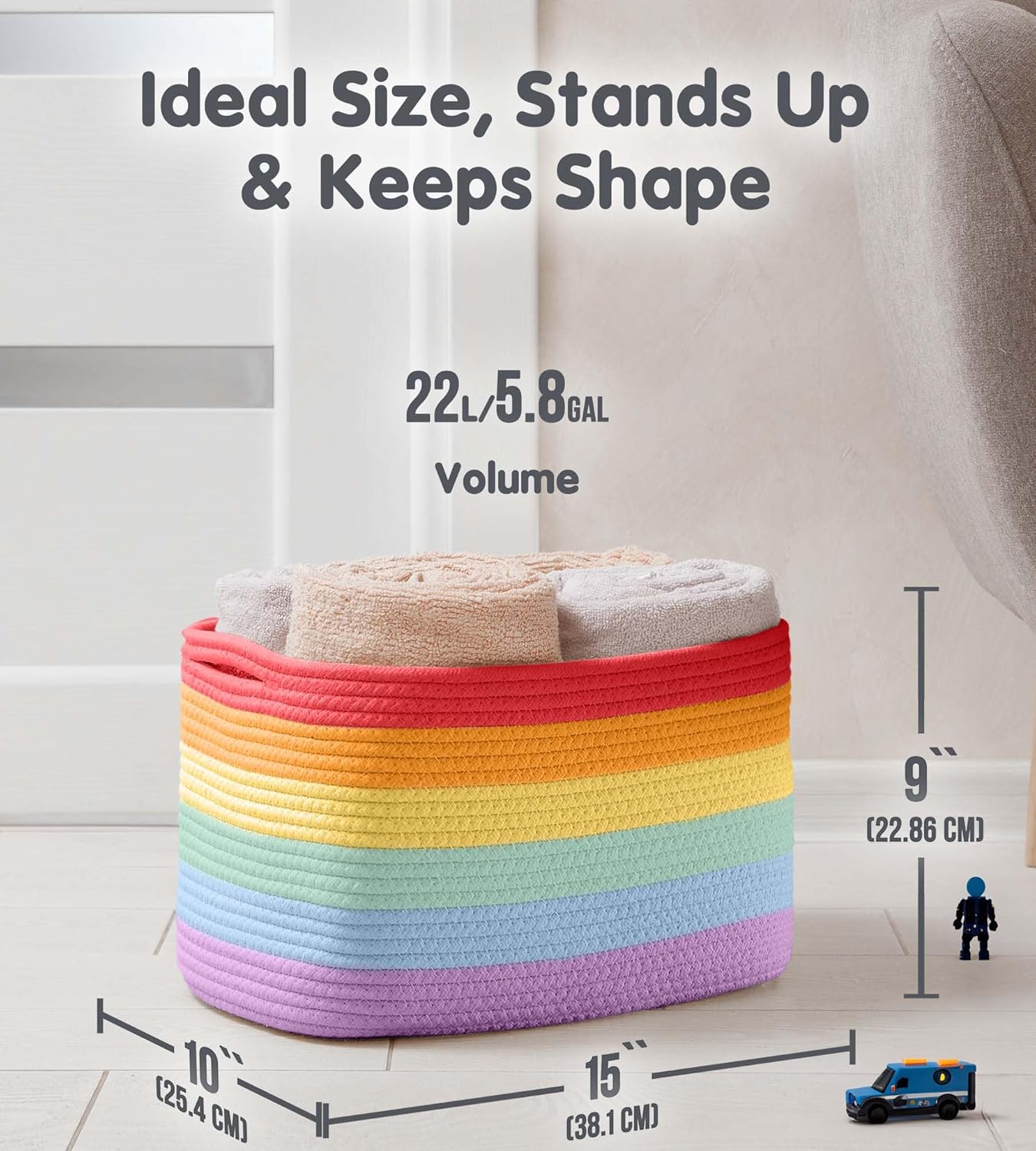 • TOY RAINBOW STORAGE Bin with Handles: Ideal for holding kid's items, our small rope basket offers practicality and style making it a good pick basket!