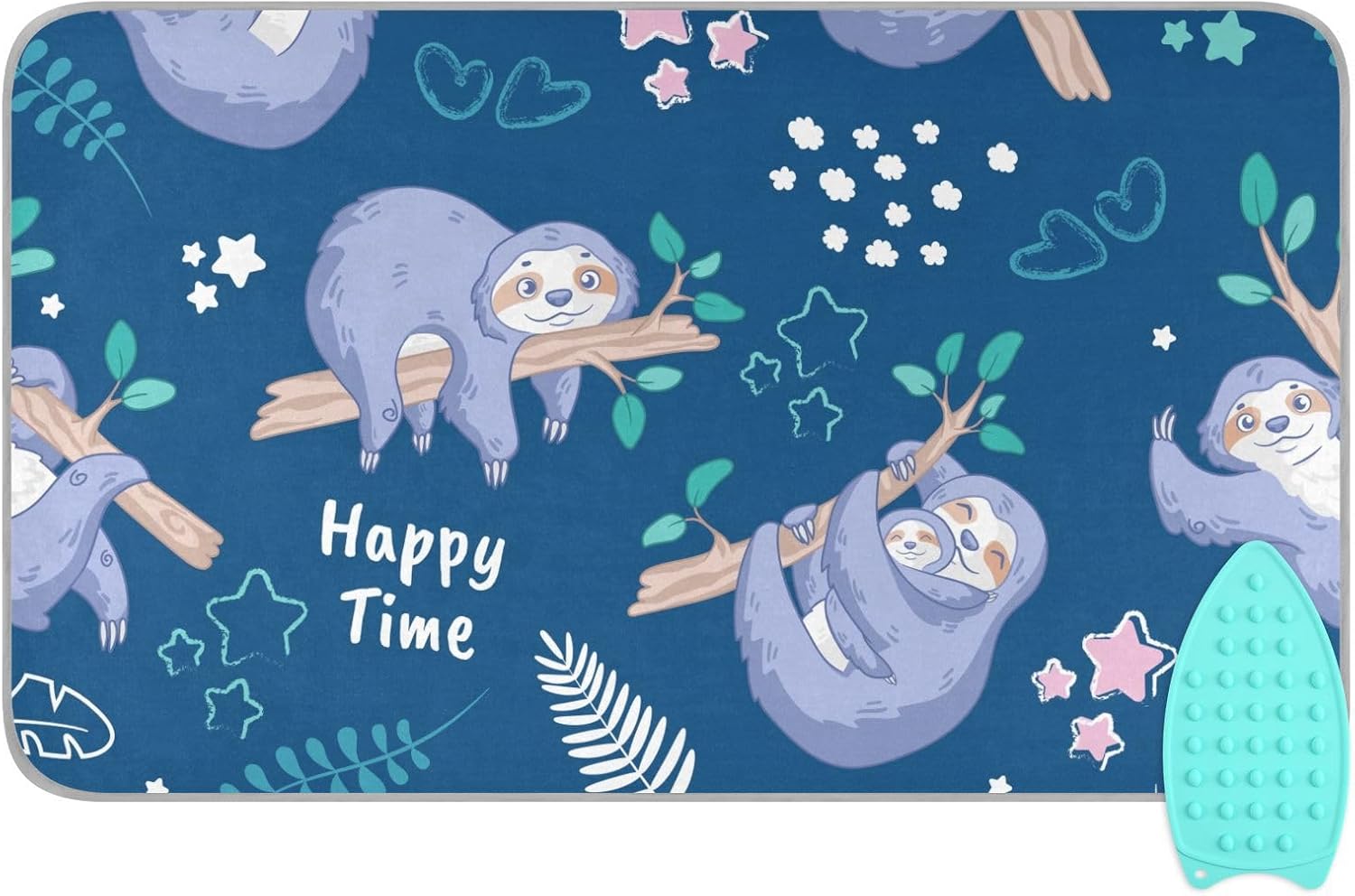 Ironing Mat Thickened Ironing Blanket Travel Portable Double-Side Using Ironing Pad Travel Isolate Heat Pad Cover for Washer Dryer Table Top Countertop (27.6x47.2in) Sloth