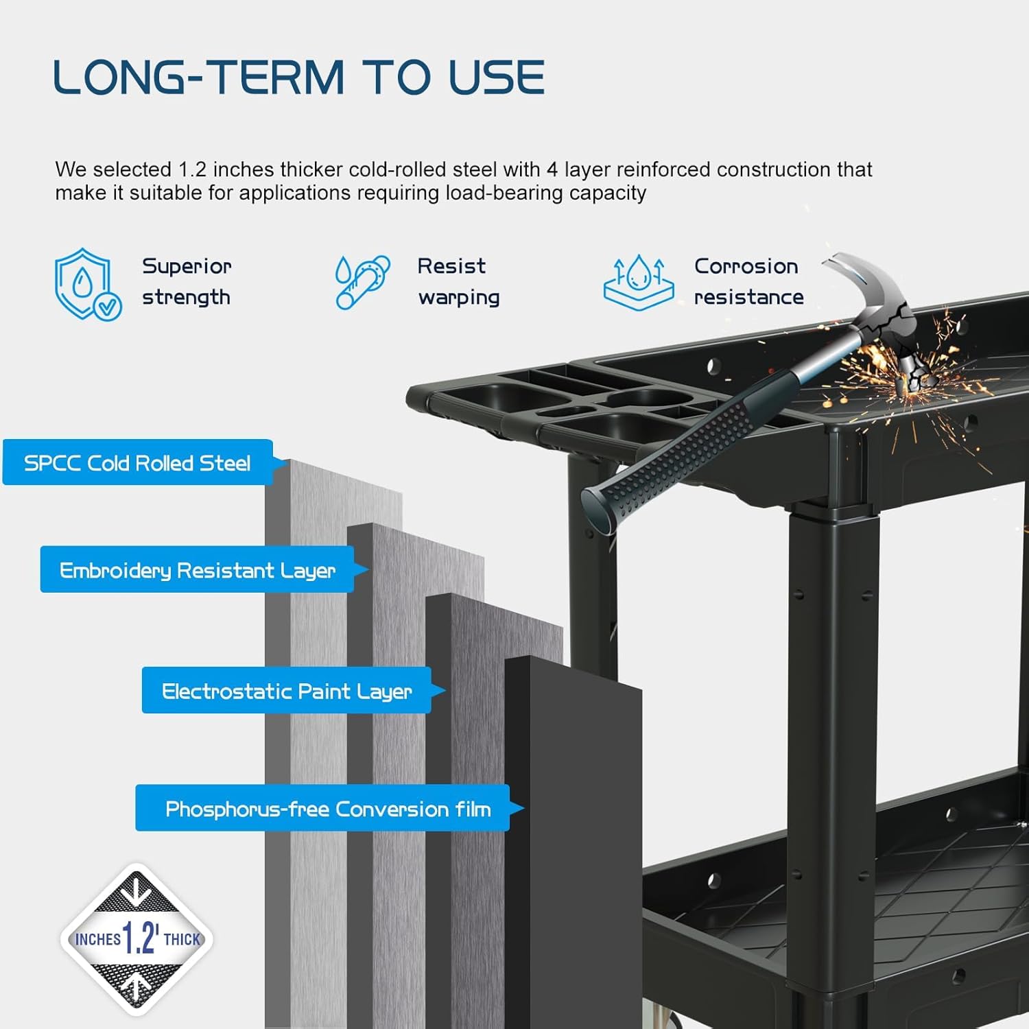 • 【Excellent Storage Capacity】Outstanding 1000 lbs load capacity, large storage space, and multiple storage configurations for more reasonable storage of items of all sizes ensure you can move more goods at once and increase work efficiency. And every cart is professionally load tested before it leaves the factory.