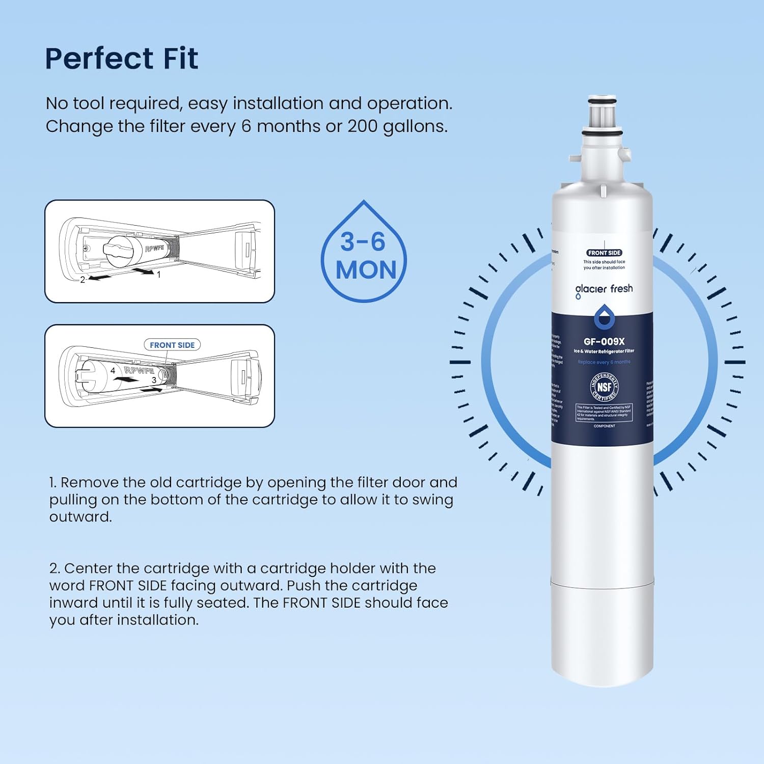 • Replacement for models: RPWFE, WSG-4, DWF-36, WF277, R-3600, MPF15350, OPFG3-RF300, RWF1063, RWF3600A. Compatible with select GE french-door refrigerators.