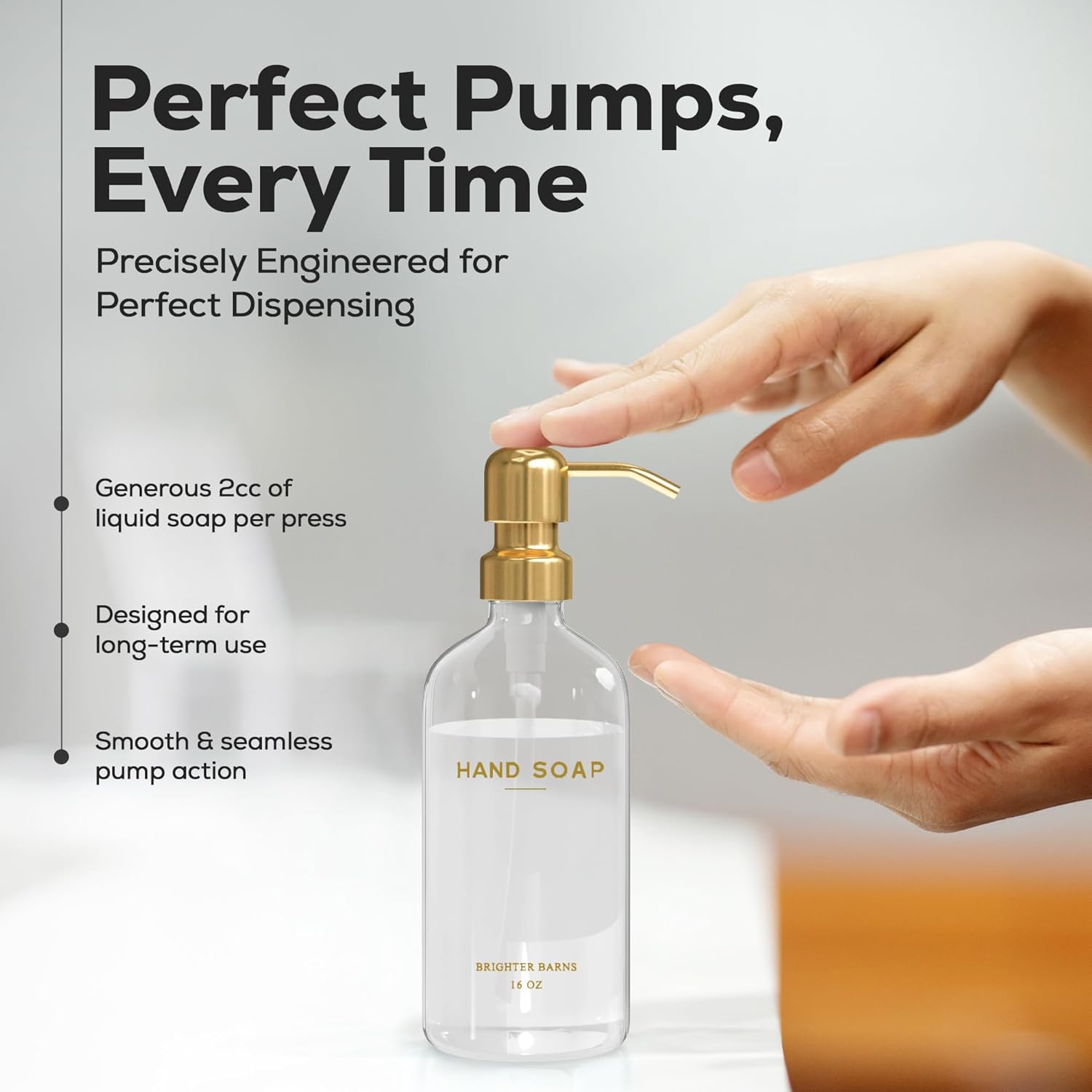 • AMERICAN DESIGN, UNCOMPROMISING QUALITY - Crafted with meticulous attention to detail, our glass gold soap dispenser set features 2 fortified 16oz glass bottles along with a set of corrosion-proof 304G stainless steel silver pumps. All designed in the USA to provide unbeatable quality and enduring style that you can trust.