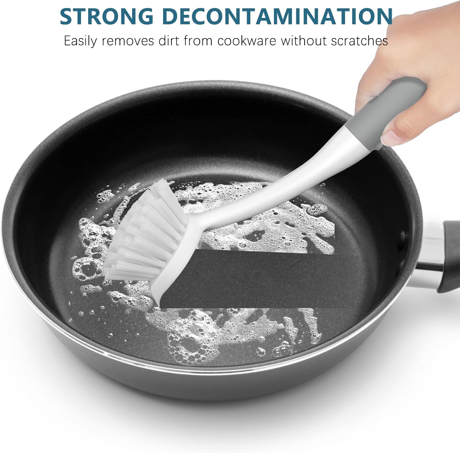 • NON-SLIP HANDLE: The kitchen dish brush is with ergonomic design and the handle has built-in non-slip rubber, which is not easy to slip off and effortless to use. Besides, it can protect your hands. Form now on, doing housework is pleasant job for you
