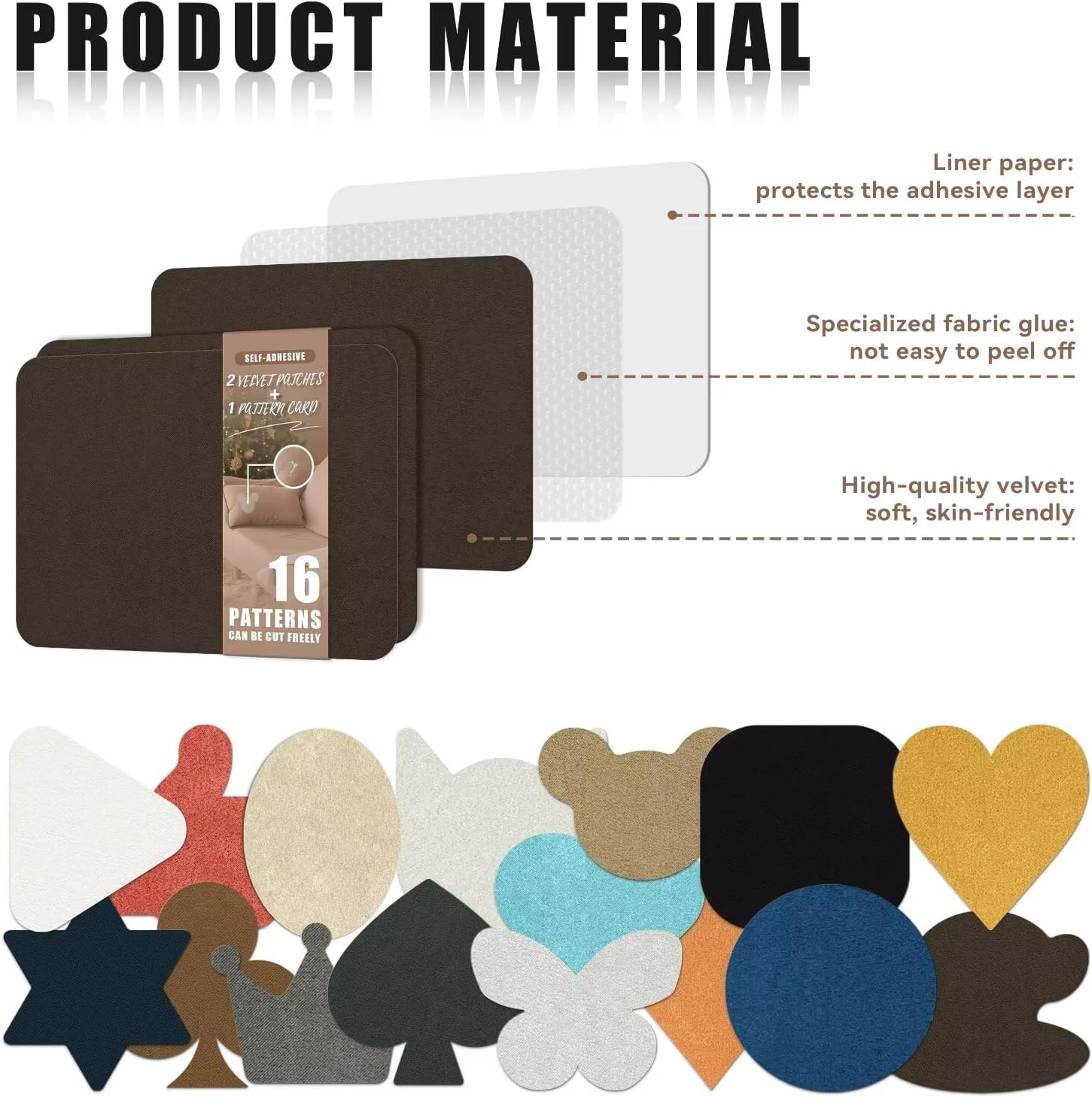 • 【Packaging Includes】:This fabric repair kit includes 2 pieces of 8.3 inch x 11 inch Velvet Patches, along with a pattern card (16 patterns available for cutting).
