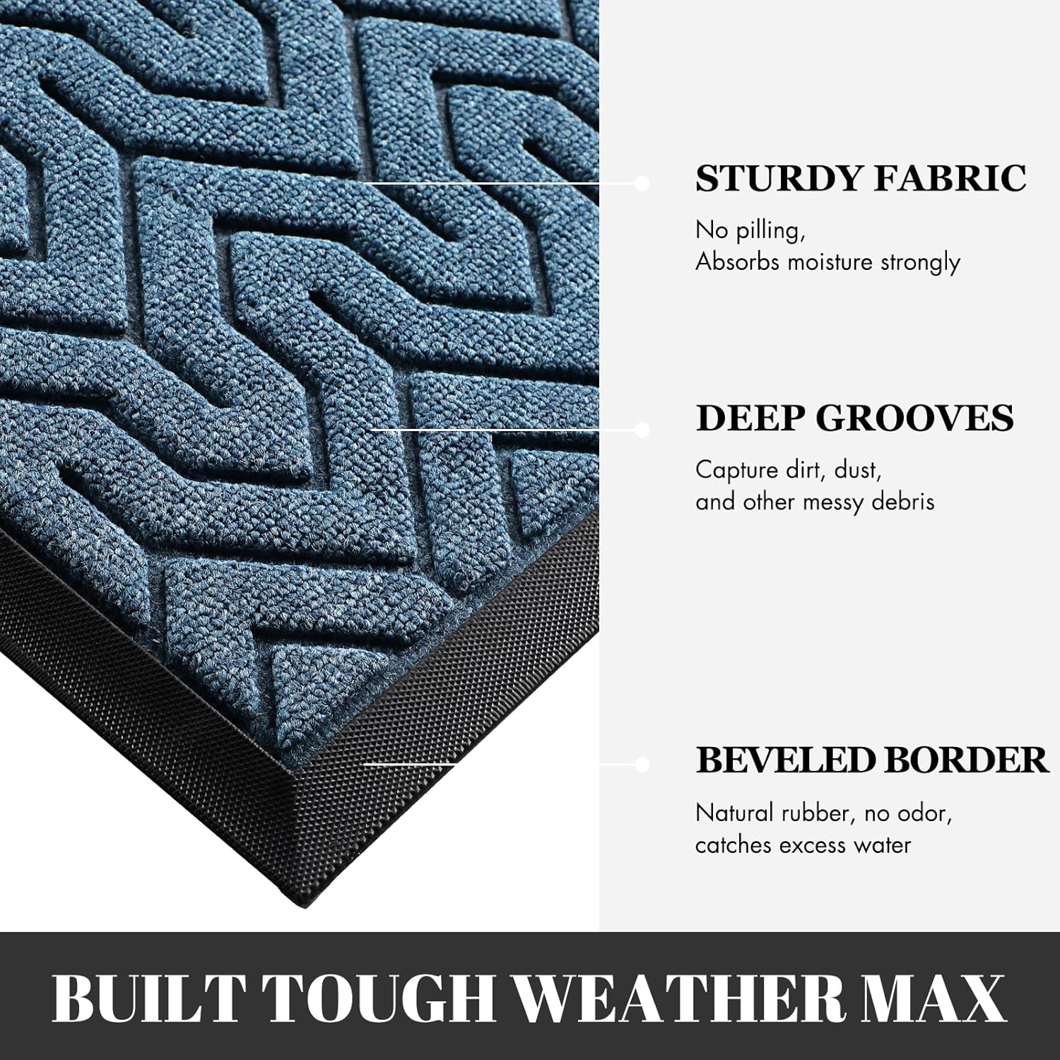 Yimobra Extra Large Door Mat Outside Entrance 60x32, Waterproof Heavy Duty Outdoor Mats for Front Door, Non Slip Rubber Entry Mat for Garage Patio, Easy Clean, Mix Blue