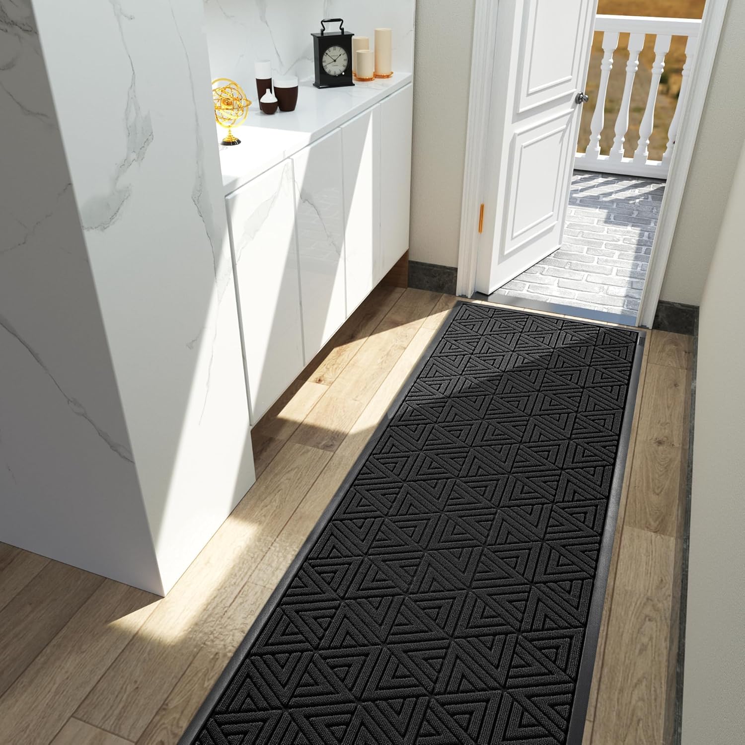 Yimobra Front Door Mat Outside Entrance 72 x 24, Waterproof and Washable Outdoor Mat, Non Slip Rubber Backing, Heavy Duty Welcome Matt for Home Entry Floor Porch Garage Office, Low Profile, Black