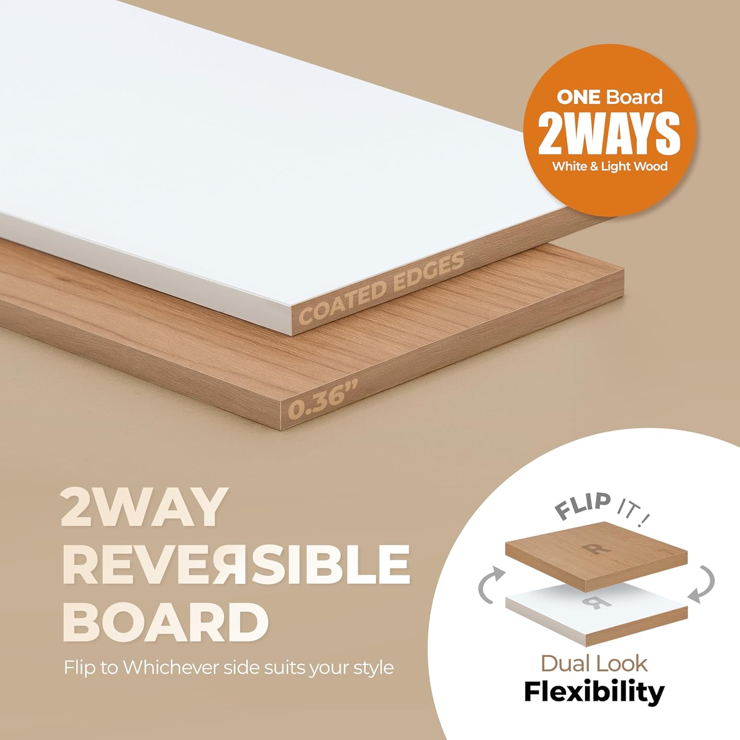 • IDEAL & PRACTICAL HOME DECORATION SHELVING - As applied posh white matte color and smooth secret hole design, it creates modernity and enhances the home interior effect. You can choose the wood pattern board that can use both sides (Wood Grain or White Pattern) freely to suit the mood of your home by turning upside down easily. It is made of thick Eco-friendly overlaid coating boards, so you don't need to paint them to avoid moisture or use shelf liner to prevent falling out.