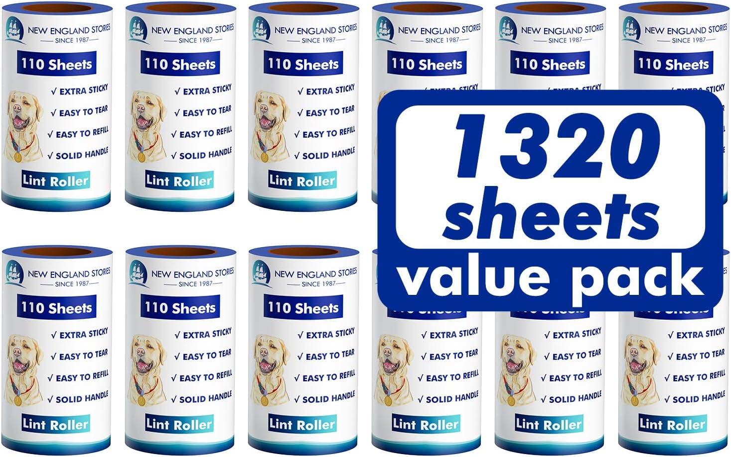 Lint Rollers for Pet Hair Extra Sticky, 1320 Sheets (12 Refills Mega Value Set), Portable Pet Lint Remover for Clothes, Furniture, Carpet, Dog & Cat Hair Removal