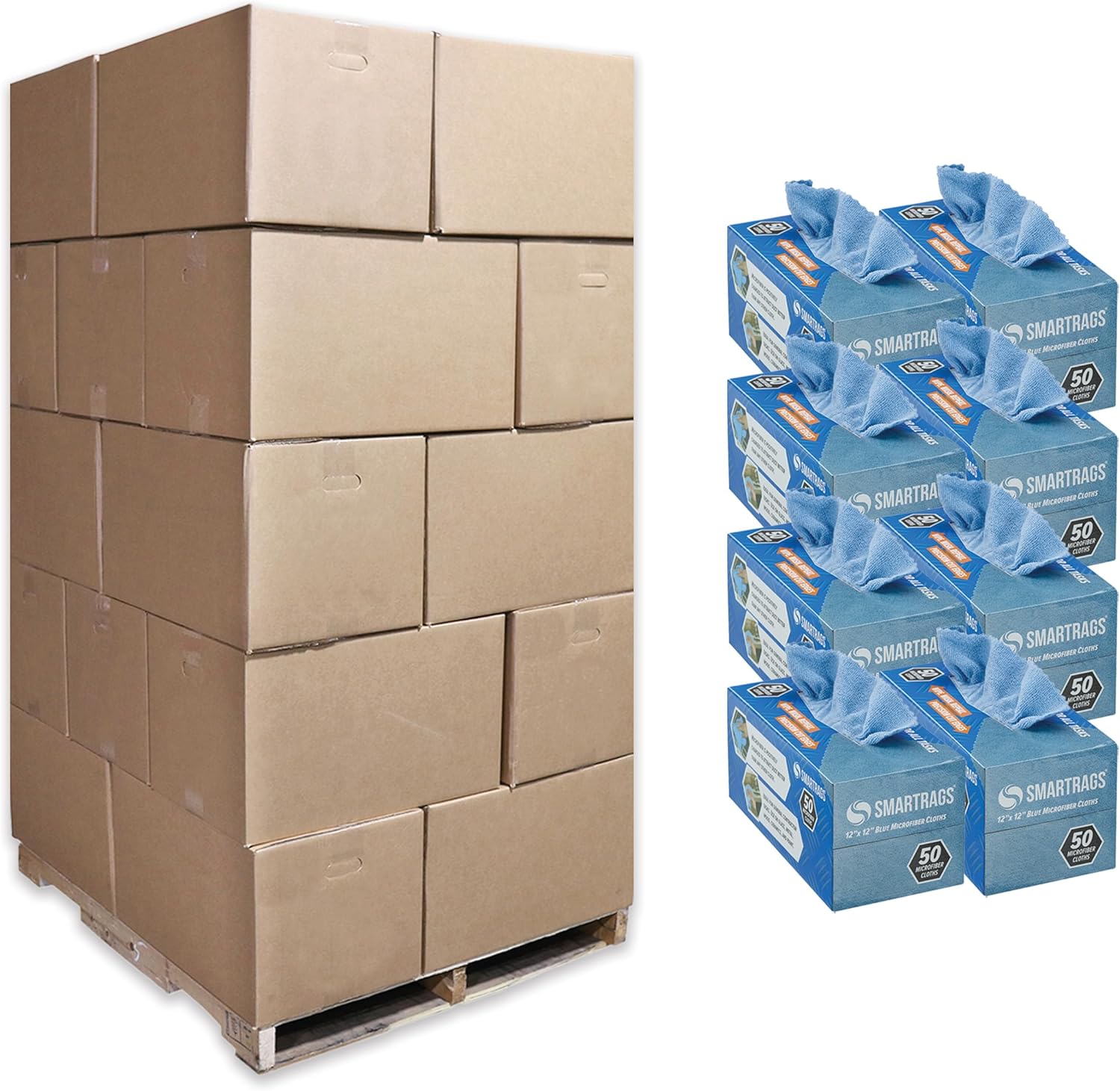 Arkwright Smart Rags in Box - (Pallet of 14400) Lint Free Microfiber Cleaning Cloth, Scratch & Streak-Free, Dispensable Wash Towels for Cars, Window Glass, and Auto Shop, 12 x 12 in, Blue