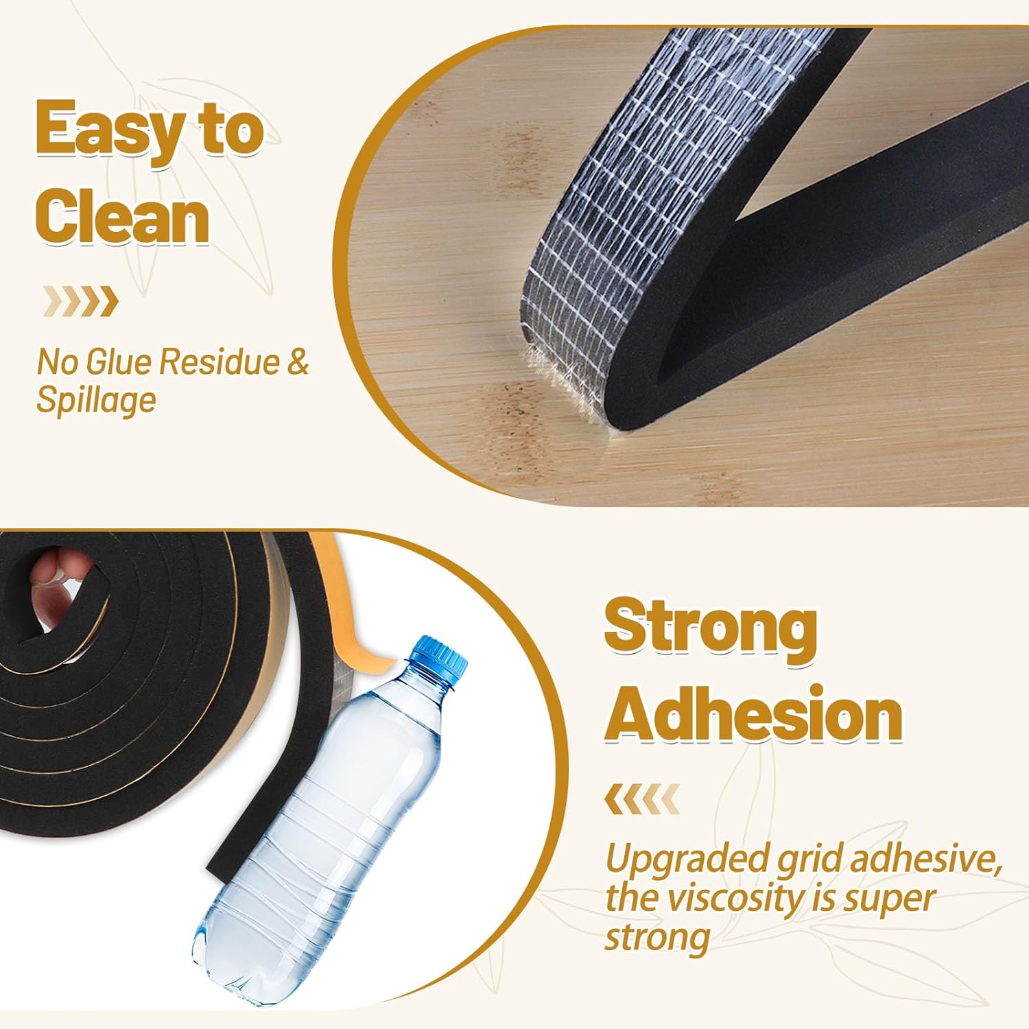 • STRONG ADHESION - Compared with most foam seal strips on the market, our weather stripping is UPGRADED version, its strong grid adhesive backing makes it stick firmly on the surface. It’s waterproof, non-degumming and won’t fall off easily.
