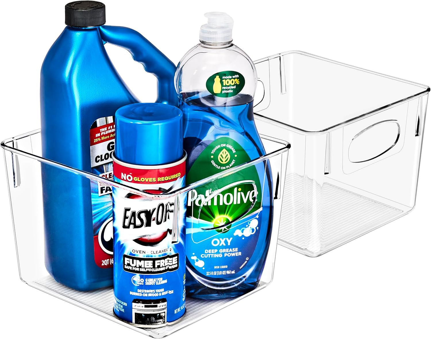 • Clear Cleaning Supplies Organizer: The Sorbus Clear Bins for Organizing make it convenient and easy to organize household essentials - Perfect for storing cleaning supplies under the sink - Store and organize items in the kitchen, bathroom, pantry, office closet, and more