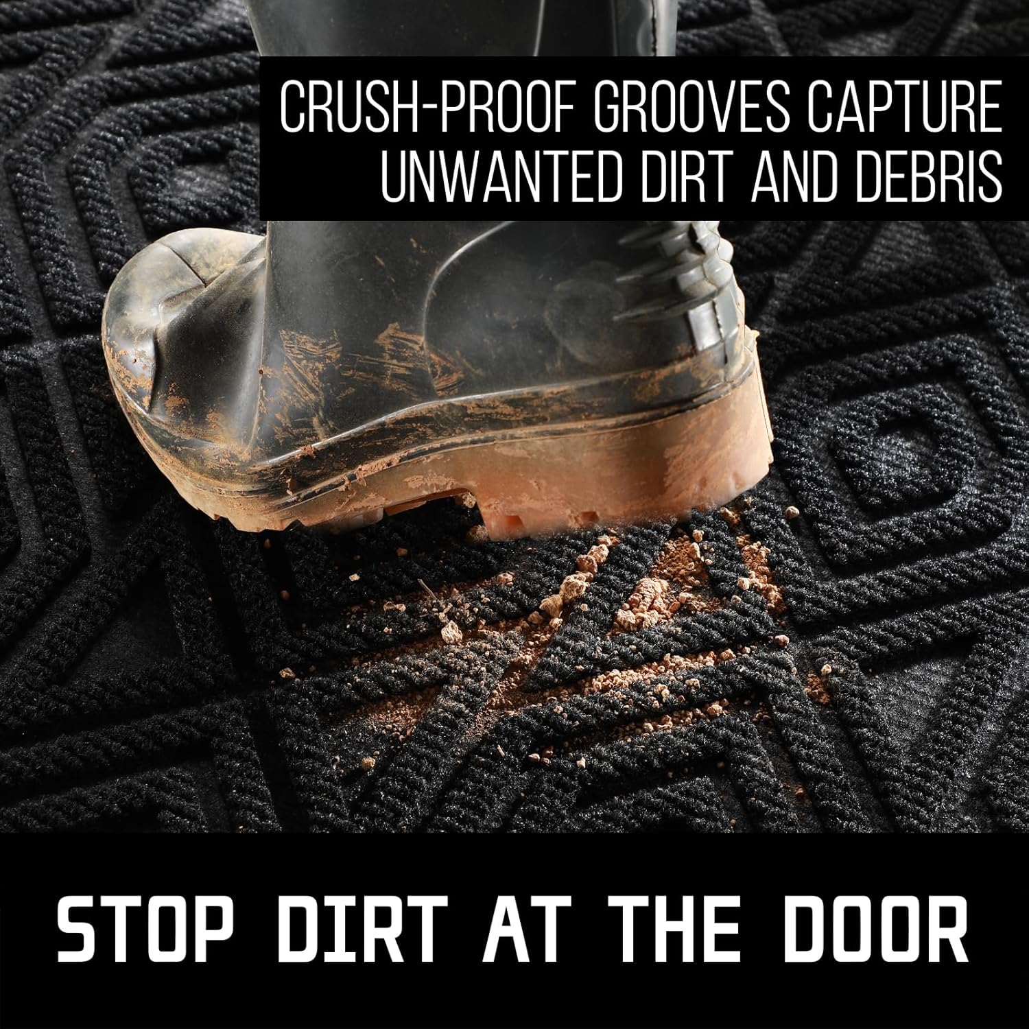 • [CAPTURE DIRT AND MOISTURE] Yimobra front door entryway mat outdoor with unique pattern design, forming a detention dam extending in all directions, helping to capture dirt, dust, gravel, mud, sand, grass or other messy debris and prevent them from entering Indoor; The surface of floor mat beautifully woven polyester fabric absorbs moisture, and the sturdy oblique rubber edge will not accumulate water in rainy and snowy days, keeping your home dry and clean