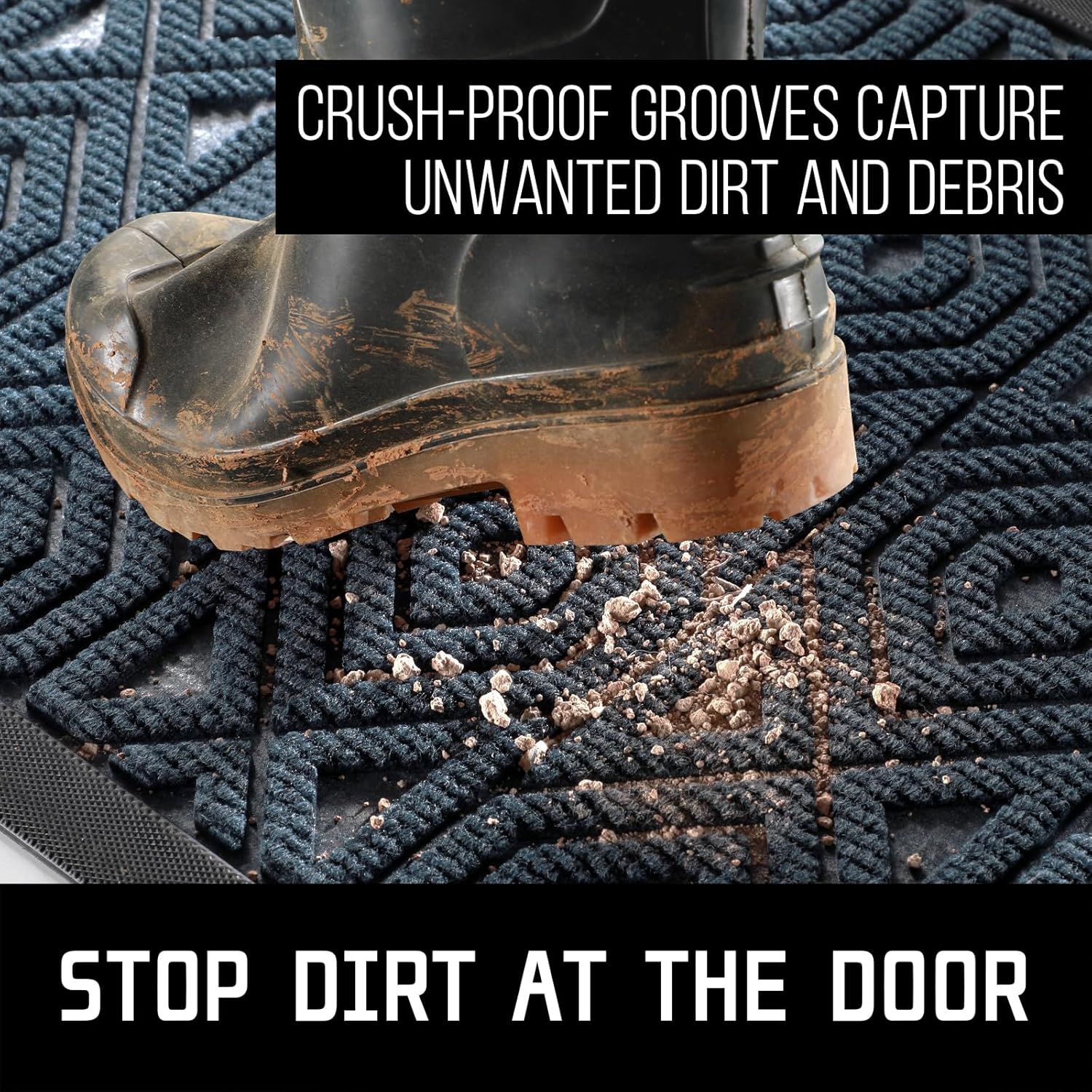• [CAPTURE DIRT AND MOISTURE] Yimobra front door entryway mat outdoor with unique pattern design, forming a detention dam extending in all directions, helping to capture dirt, dust, gravel, mud, sand, grass or other messy debris and prevent them from entering Indoor; The surface of floor mat beautifully woven polyester fabric absorbs moisture, and the sturdy oblique rubber edge will not accumulate water in rainy and snowy days, keeping your home dry and clean