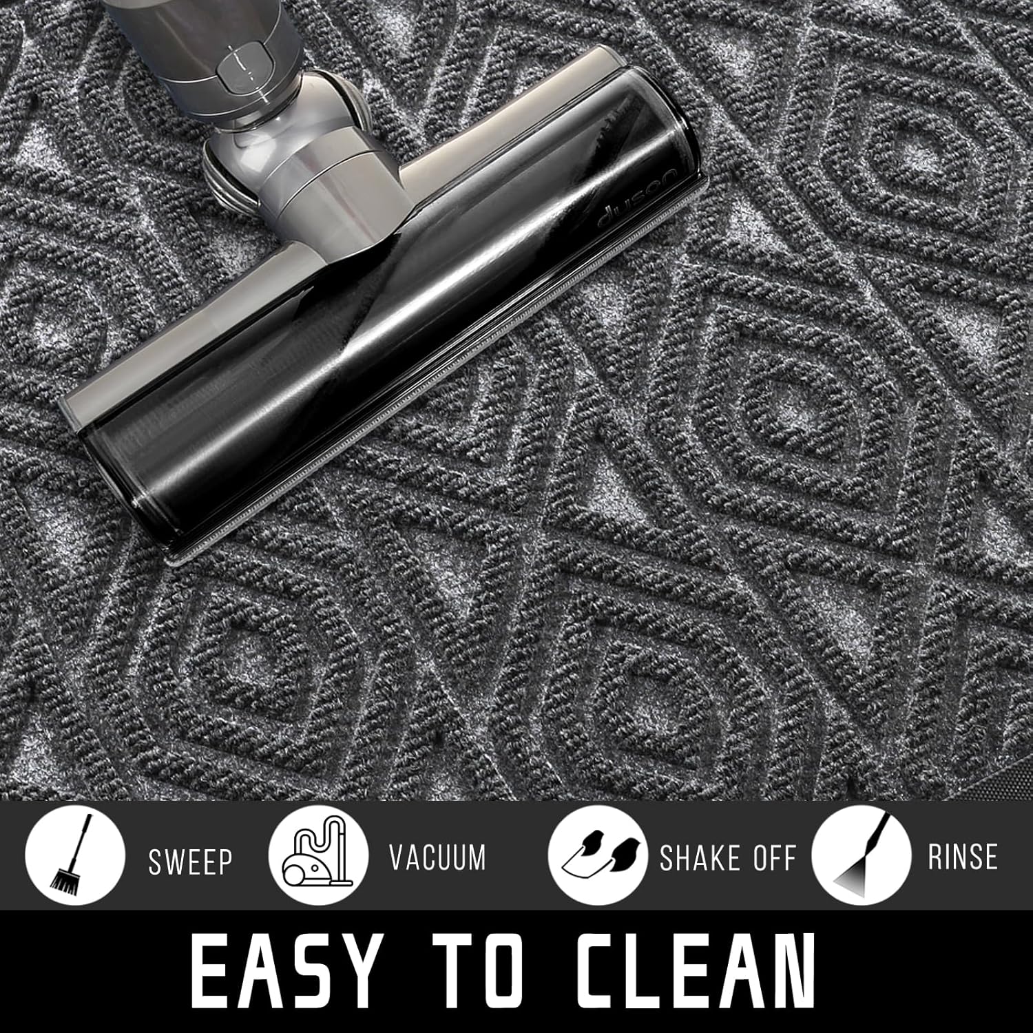 • [EASY TO CLEAN] Yimobra outdoor mat, Just use a vacuum cleaner, or sweep with a broom, or tap the backing and shake the doormat. For more in-depth cleaning, use a garden hose to rinse the floor mat, then hang it in a ventilated place to air dry it or use a dryer