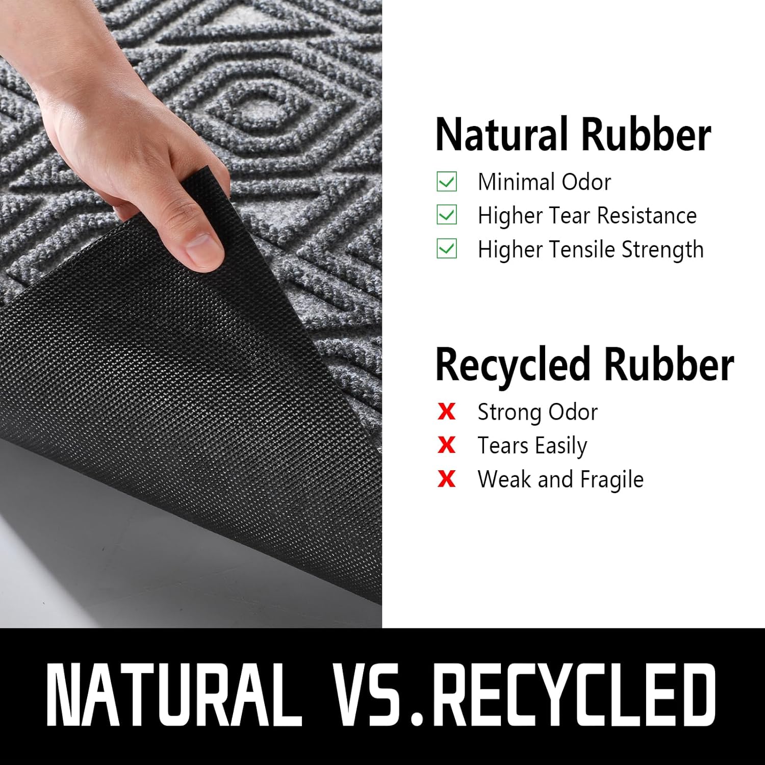 • [CAPTURE DIRT AND MOISTURE] Yimobra front door entryway mat outdoor with unique pattern design, forming a detention dam extending in all directions, helping to capture dirt, dust, gravel, mud, sand, grass or other messy debris and prevent them from entering Indoor; The surface of floor mat beautifully woven polyester fabric absorbs moisture, and the sturdy oblique rubber edge will not accumulate water in rainy and snowy days, keeping your home dry and clean