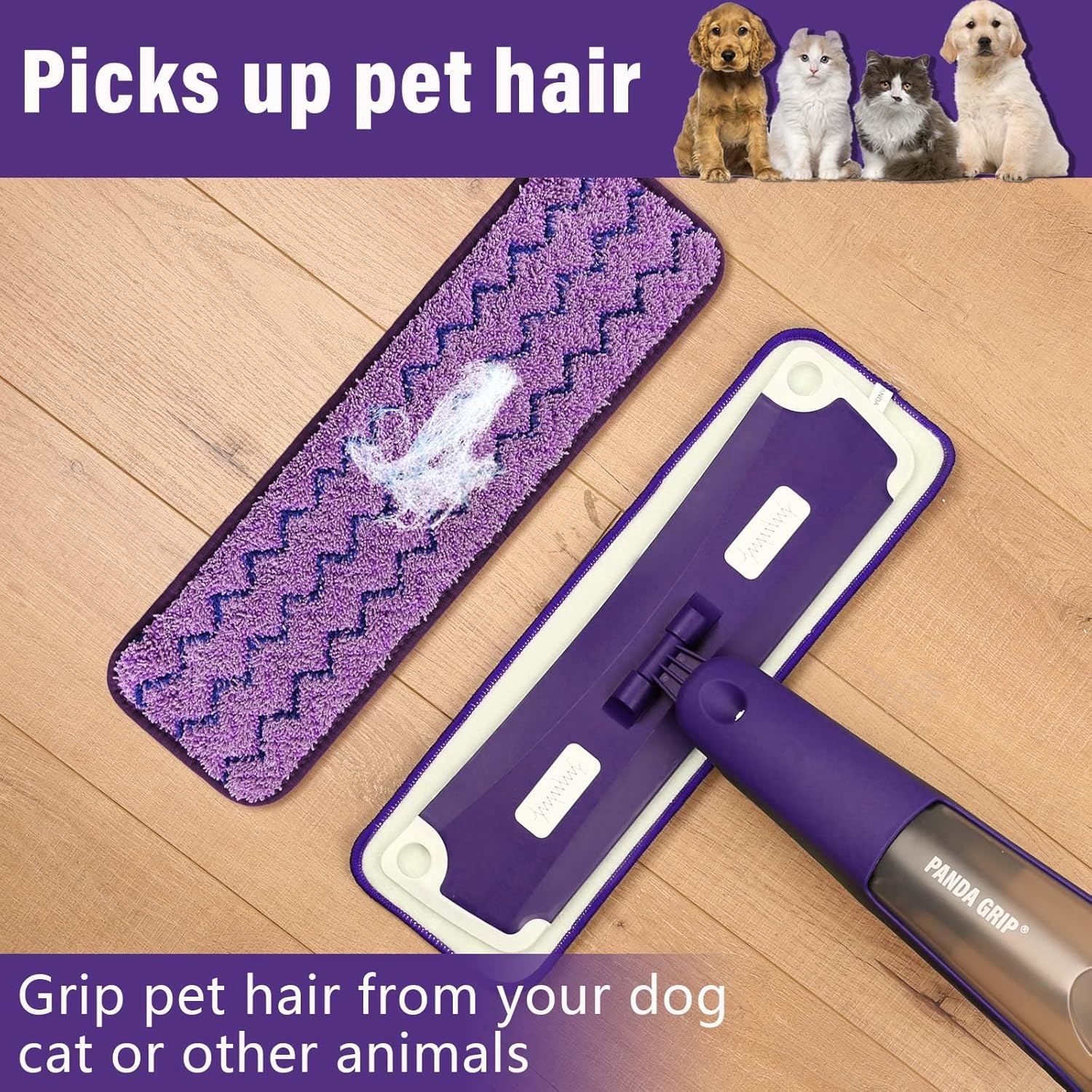 • High Quality Microfiber-Spray mop pads adopt high quality microfiber, which can fully absorb pet fur, hair, sundries, dust, oil and other stubborn stains. It has strong decontamination ability and can bring a clean environment.