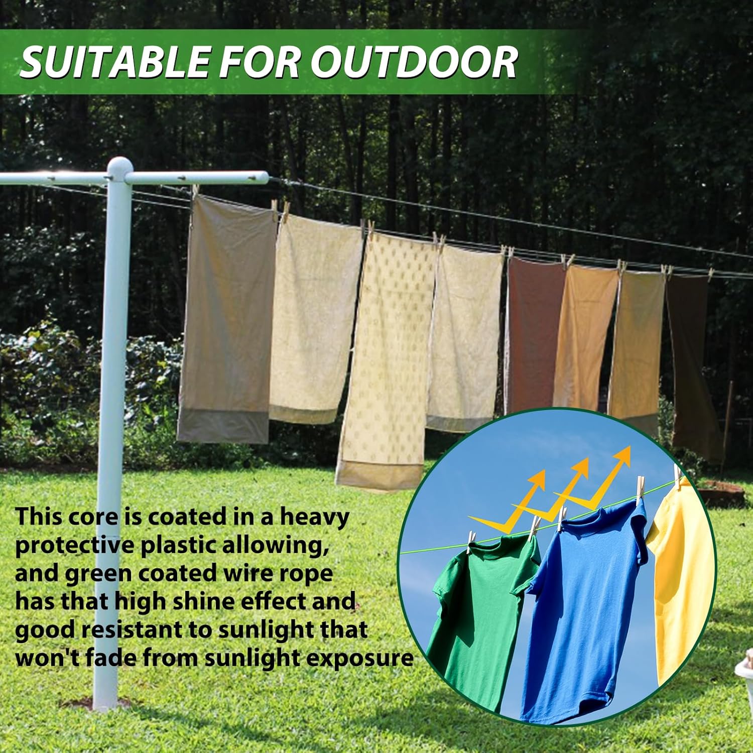 • Functionality & Aesthetics: Our green coated wire rope has that high shine effect that won't fade from sunlight exposure. Moreover, the vivid and attractive green color looks great for training grape vine, it can assimilate into the surroundings perfectly