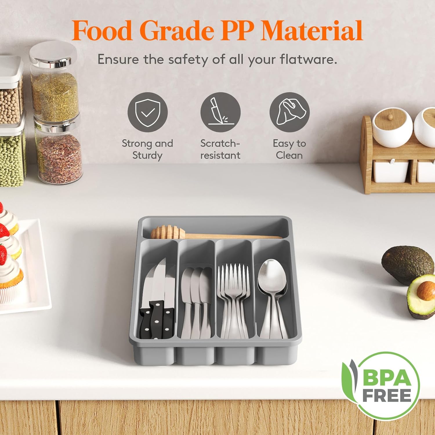 • Robust and Safe: This kitchen drawer organizer is crafted from premium PP material, BPA-free and built to last. It ensures your silverware is stored in a healthy, safe environment for worry-free use