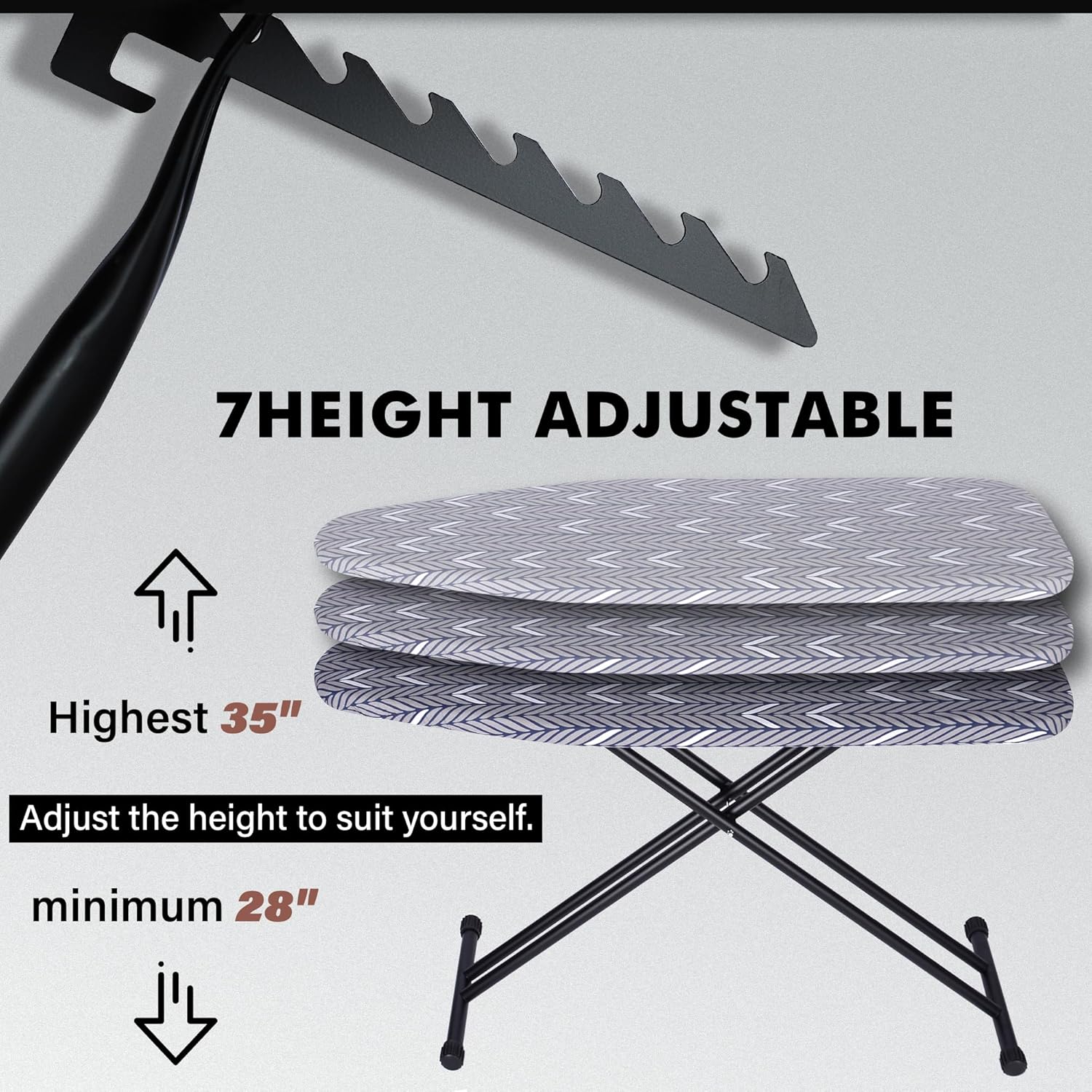 • Adjustable Height: The adjustable height feature allows you to customize the board to your preferred working height, ensuring ergonomic comfort while ironing.