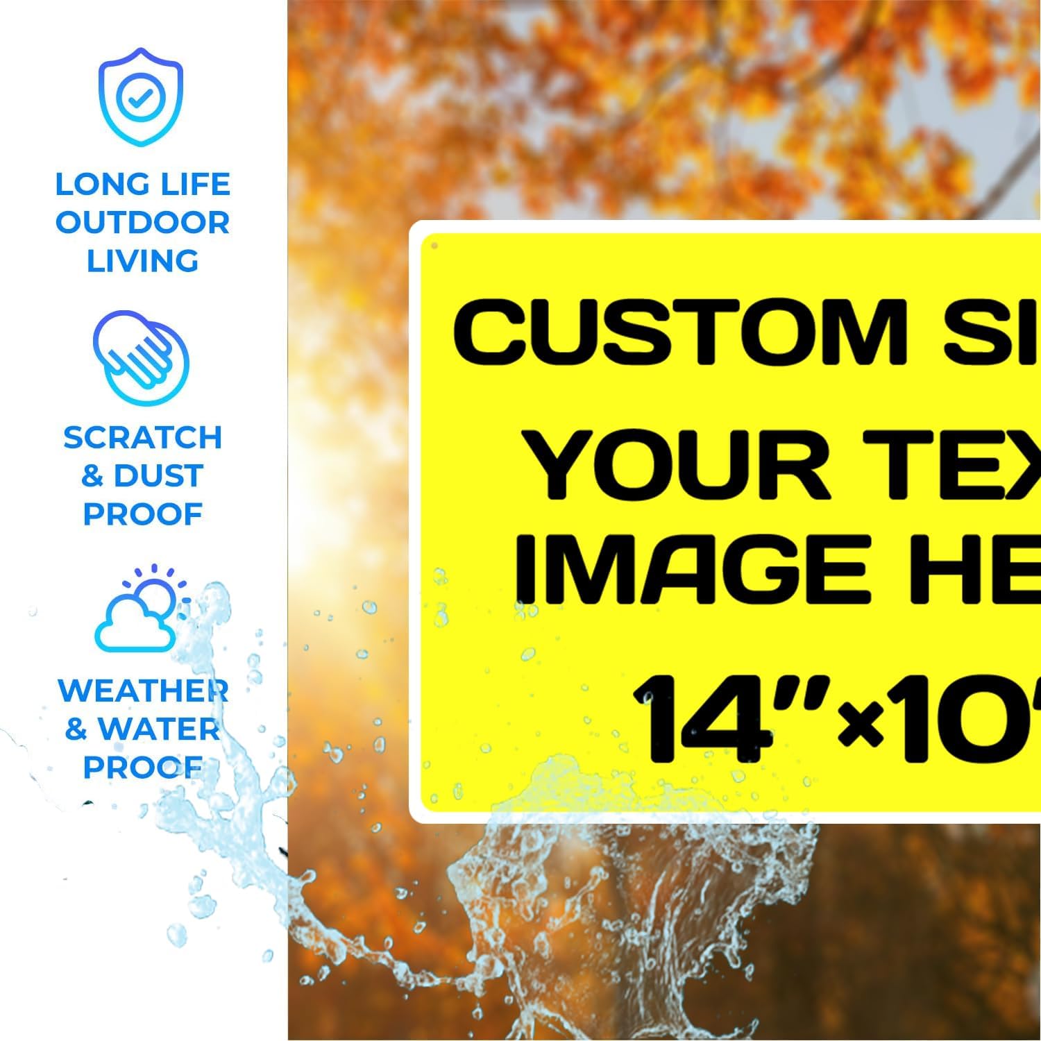 Repaly Personalized signs,Aluminum Weatherproof Metal Sign Multiple Sizes Custom Personalized Text And picture Here,hazard sign,garden sign,custom door sign,Customised business signs Yellow 14×10
