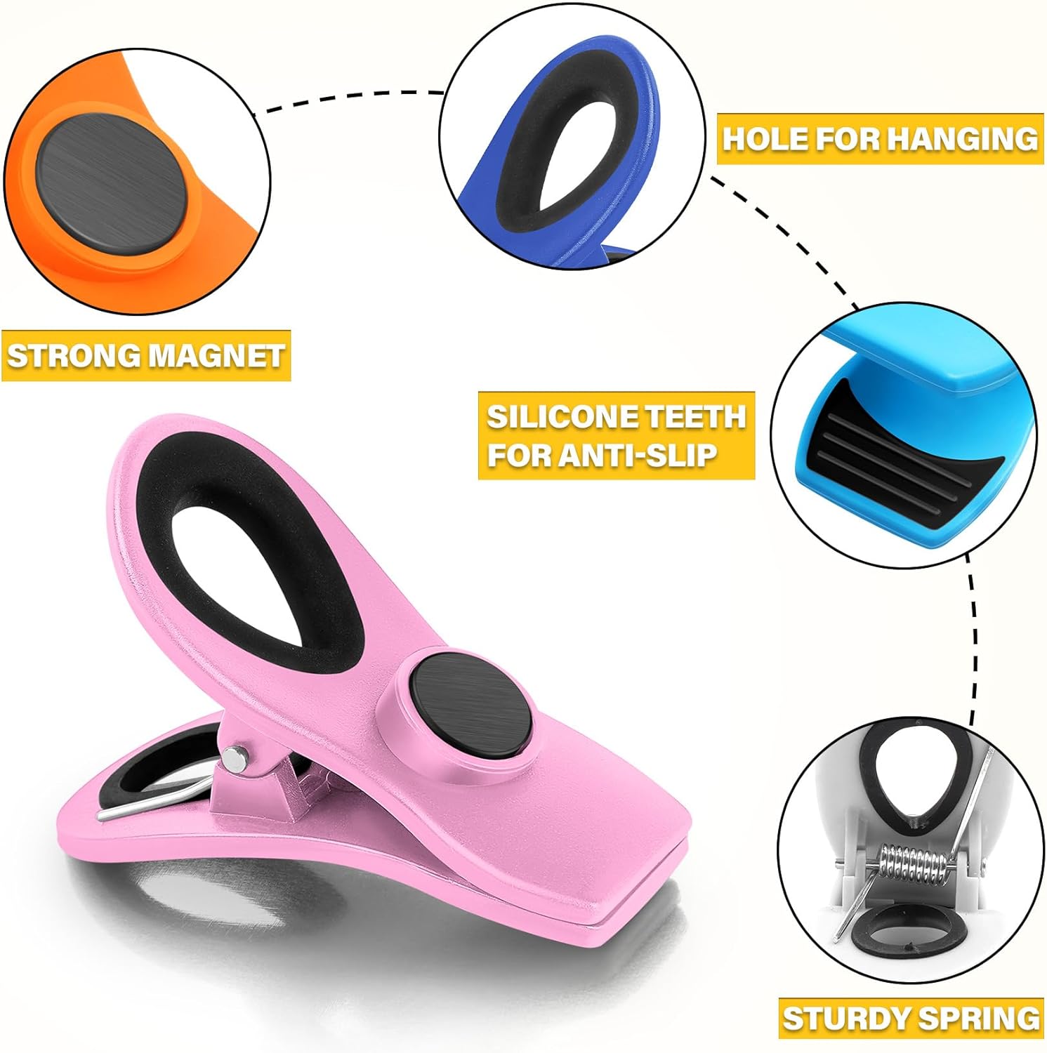 • Versatile Magnetic Clips- Chip clips heavy duty have a hole at the tail end, allowing them to be easily hung on walls, blackboards, or other surfaces with hooks. This feature not only saves storage space but also makes it convenient to grab them whenever needed.