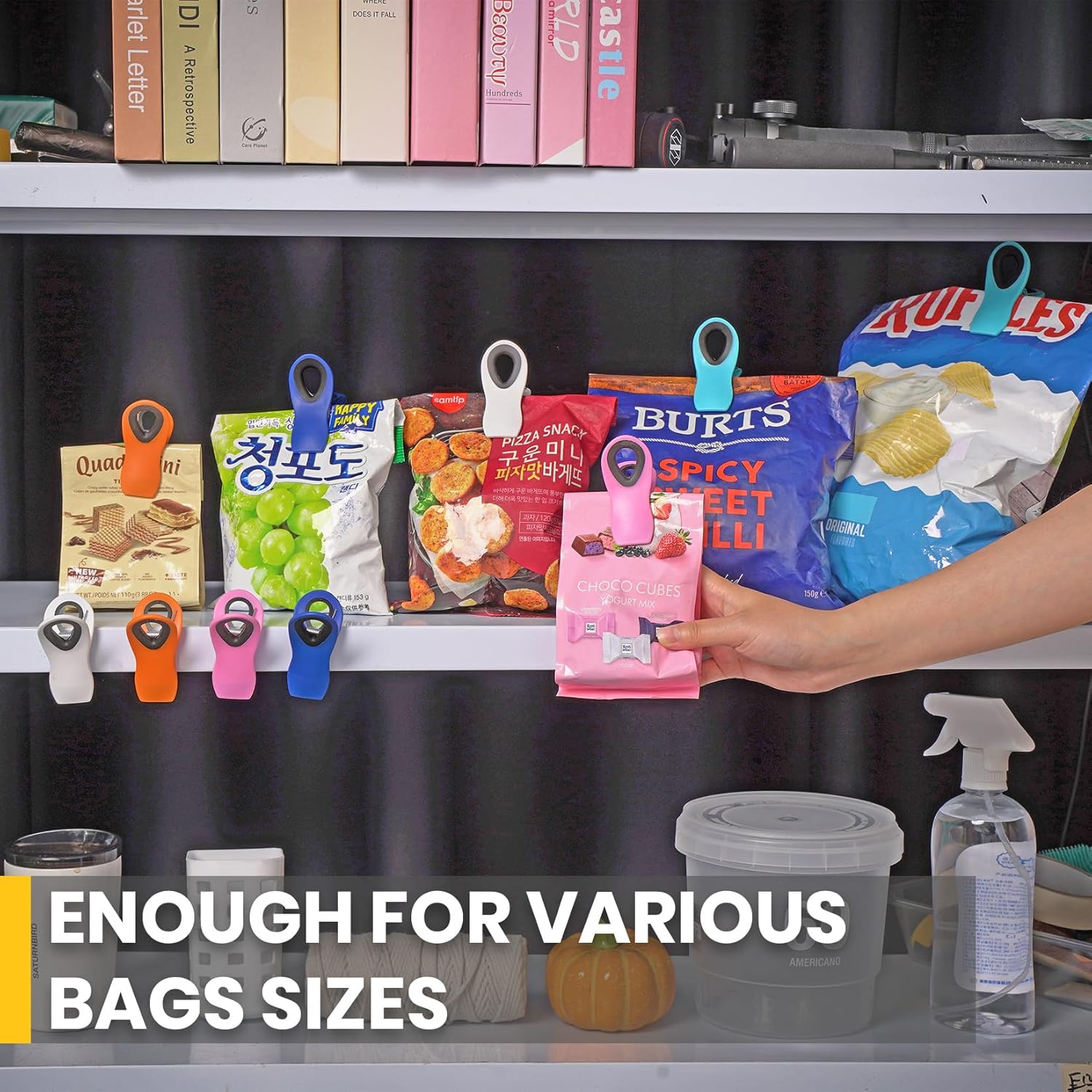 • Secure Seal Bag Clips- The top end of these food clips is specially designed with silicone, allowing them to securely grip snack bags and create a tight seal for keeping snacks fresh and dry.