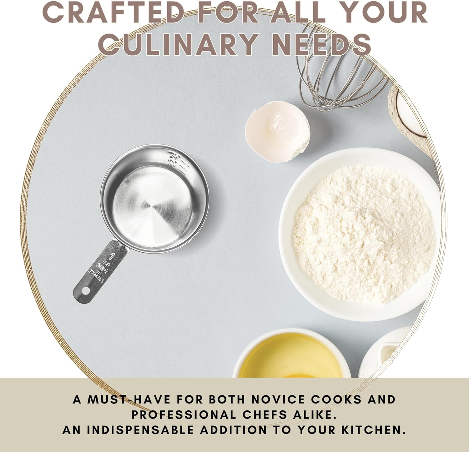 • Easy Maintenance - Cleaning this stainless steel measuring cup is quick and hassle-free, thanks to its dishwasher-safe, polished, and non-porous surface that resists sticky food buildup, oils, odors, and stains. Even stubborn ingredients like syrup, peanut butter, or cooking grease rinse off easily. Use it daily for baking, cooking, or scooping dry dog food. It nests neatly with other cups, keeping your kitchen drawers and prep areas clean, tidy, and organized.