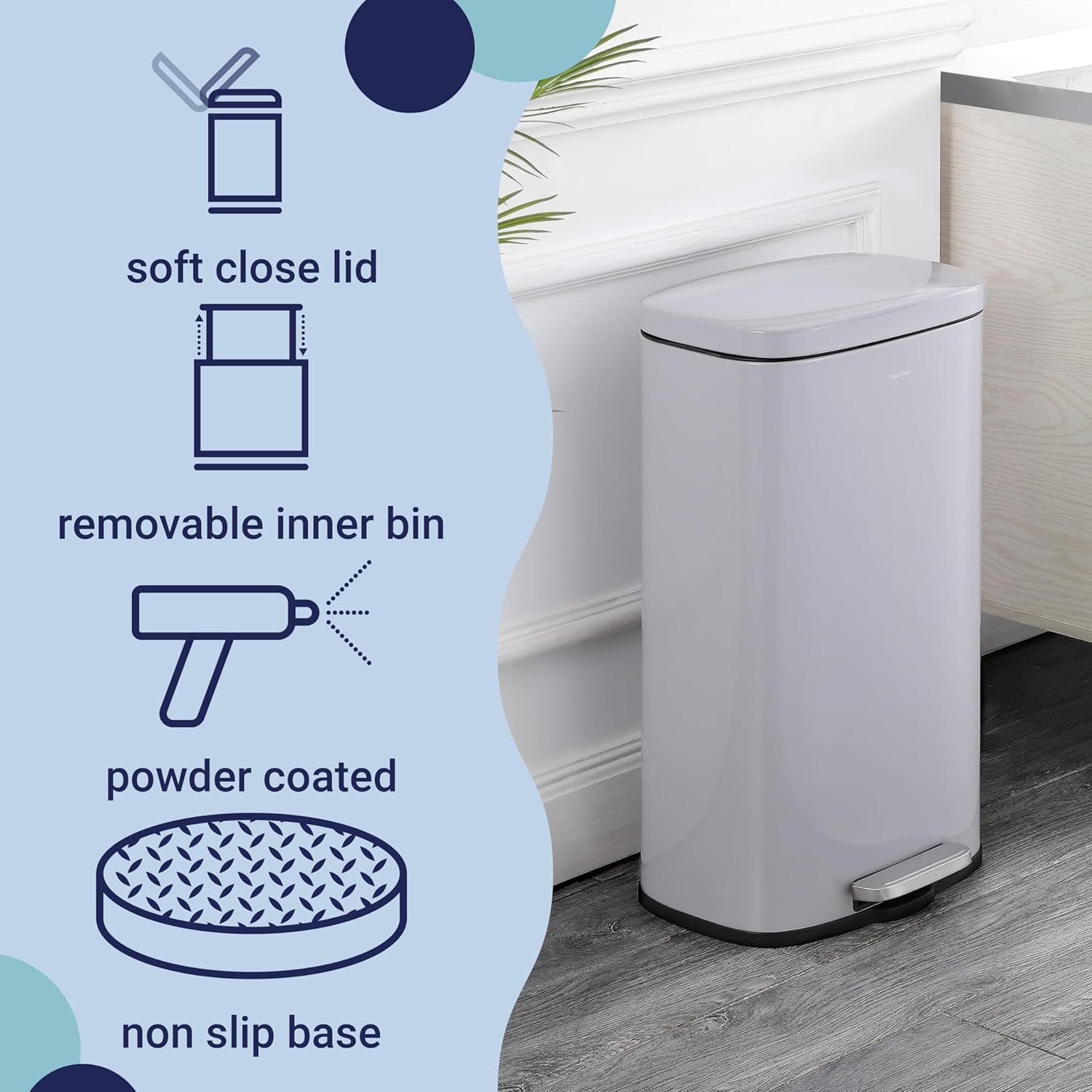 happimess HPM1011D Curtis 8-Gallon Step-Open Trash Can, Fingerprint Resistant, Modern, Minimalistic for Home, Kitchen, Laundry Room, Office, Bedroom, Bathroom, Fog Gray