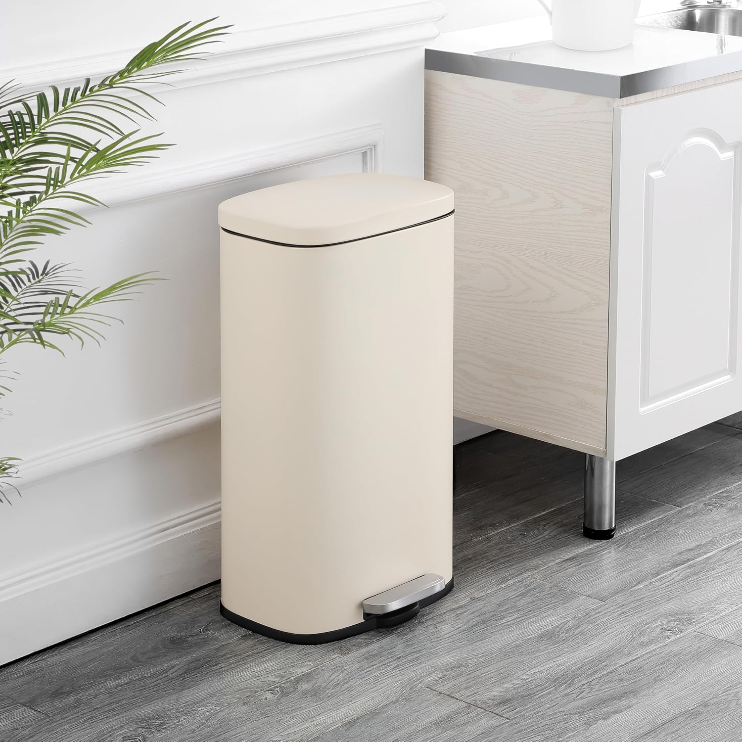 happimess HPM1011I Curtis 8-Gallon Step-Open Trash Can, Fingerprint Resistant, Modern, Minimalistic for Home, Kitchen, Laundry Room, Office, Bedroom, Bathroom, Limestone Beige