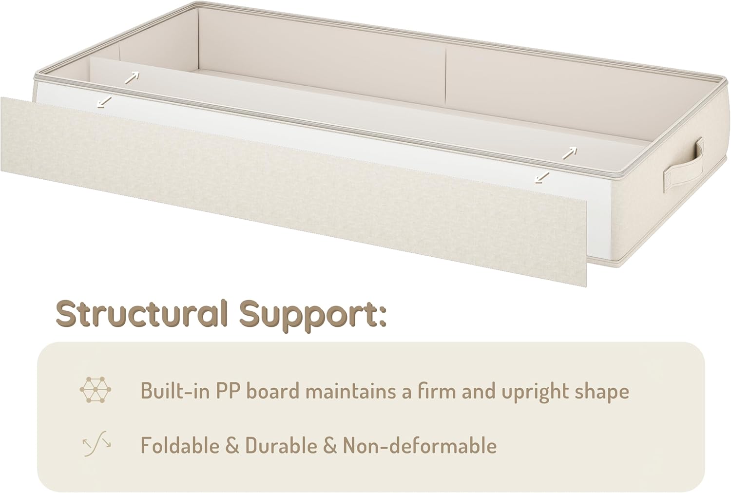 • 【High-end Fabric & Large Capacity】Crafted from high-end, durable fabric, our under bed storage bags measure 33.7"L x 17.1"W x 6"H inches each, offering generous space for your essentials. These containers are your ultimate solution for storing bulky items like seasonal clothing, comforters, and blankets, combining spaciousness with a sophisticated beige design