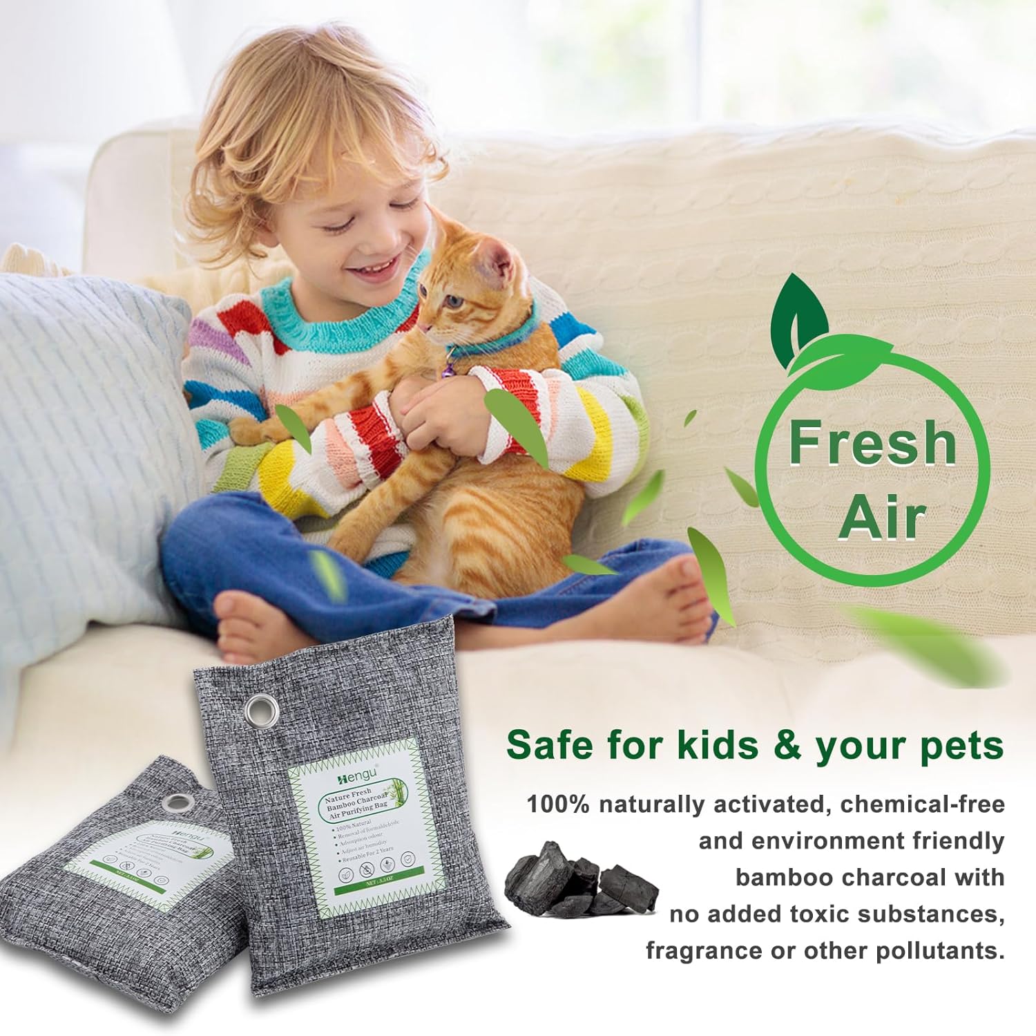 • 【Widely Used】The bamboo charcoal air purifying bag are made from natrual bamboo charcoal. You can use it anywhere such as living room, drawer, closet, shoe cabinet, car, wardrobe, fridge, pet room, sports bag, Etc. Anywhere there is a bad smell, these deodorizers will make it feel like breathing fresh air in nature.
