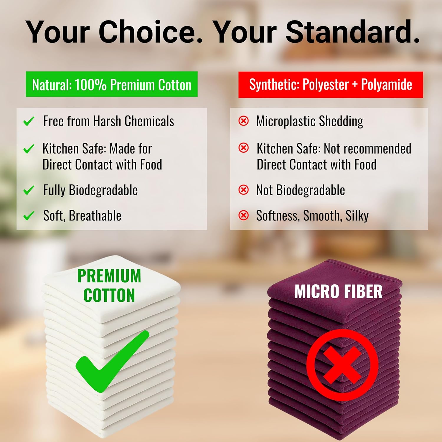 • MULTIPURPOSE: Their lint-free pure ring-spun cotton composition makes them perfect for drying glassware, hands and surfaces. Moreover, they excel at tasks like cheese straining, salad spinning, and even serving as reliable dough covers for baking.