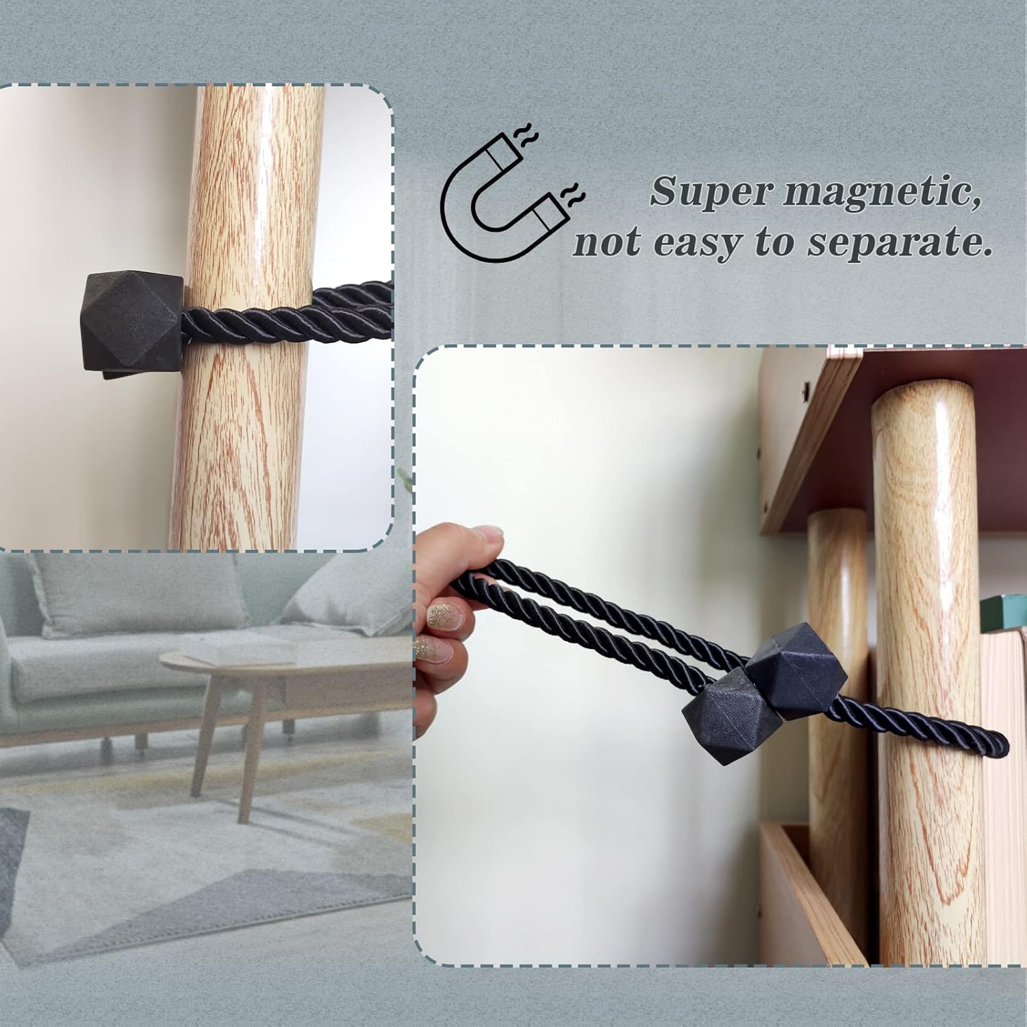 • [Upgrade Powerful Magnetic] Our magnetic curtain tiebacks magnets use high-end new imported nickel-plated magnets, with strong corrosion resistance and durability, more magnetic than ordinary magnetic curtain tiebacks, and do not rust and not lose color. The rope of curtain tie adopts upgrade thickened solid polyester yarn, which is not only durable, but also not easy to wear or pilling.