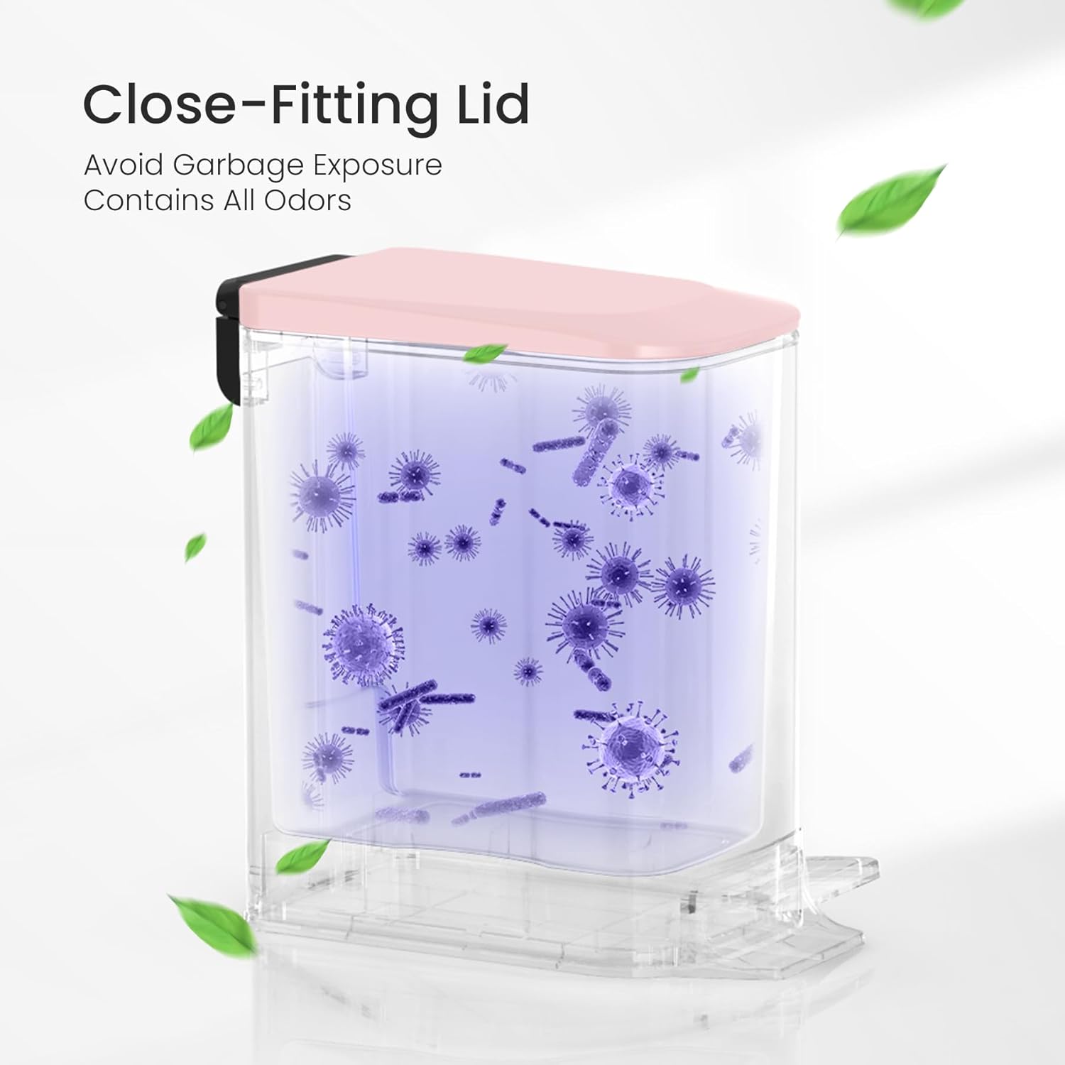 • Excellent Sealing Ability : The lid fits closely to the mouth of the small trash can, avoid garbage exposure, contains odors. And the lid design can effectively prevent your pets from getting into it and messing up your room with trash