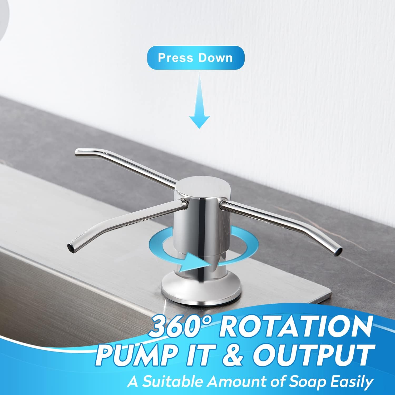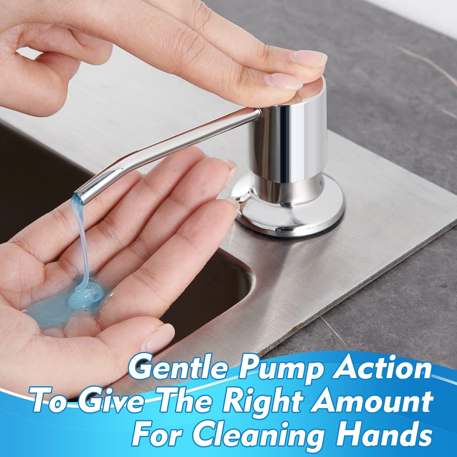 CREA Chrome Built-in Soap Dispenser for Kitchen Sink,Stainless Steel Kitchen Dish Soap Dispenser Pump,in Counter Soap Dispensers Under Sink Mouted Soap Dispenser Set 39" Tube 17oz Large Bottle