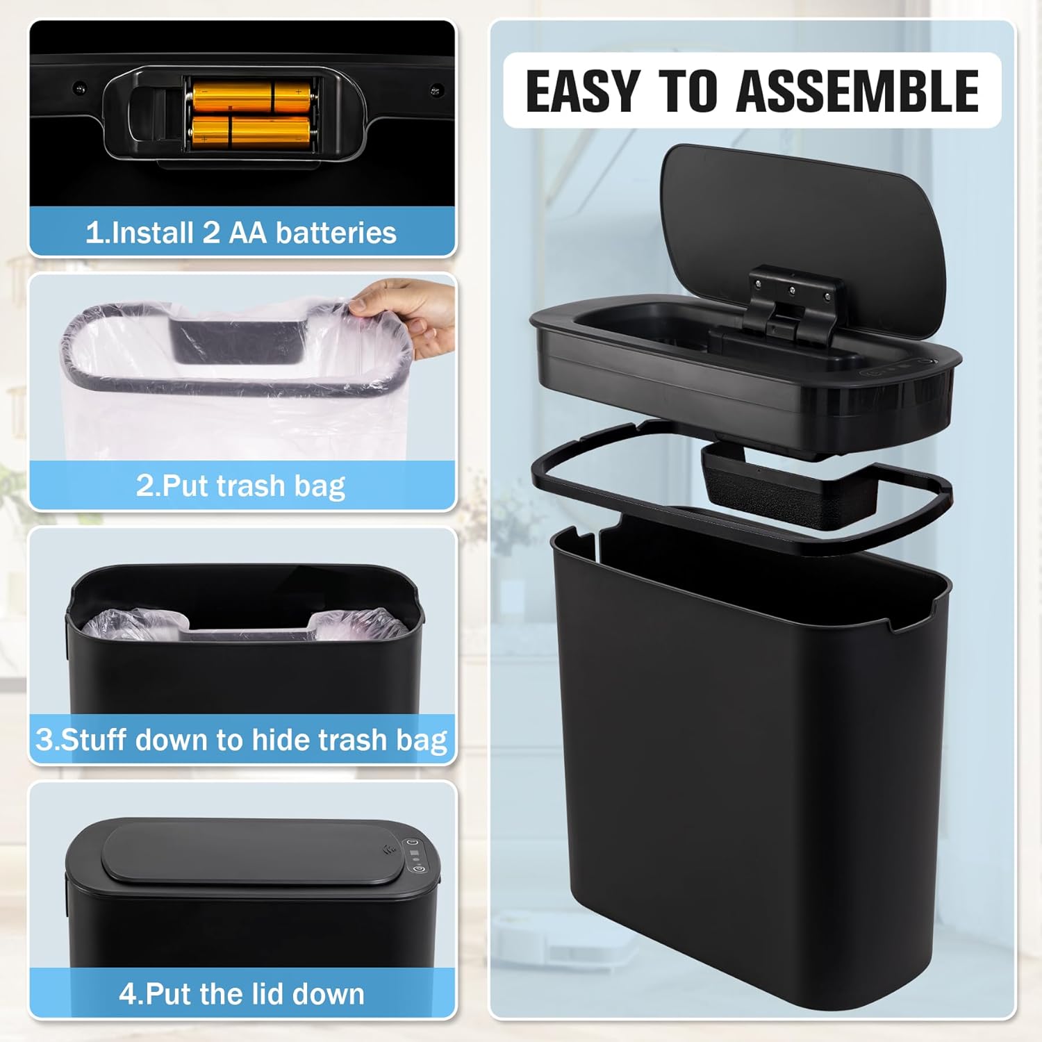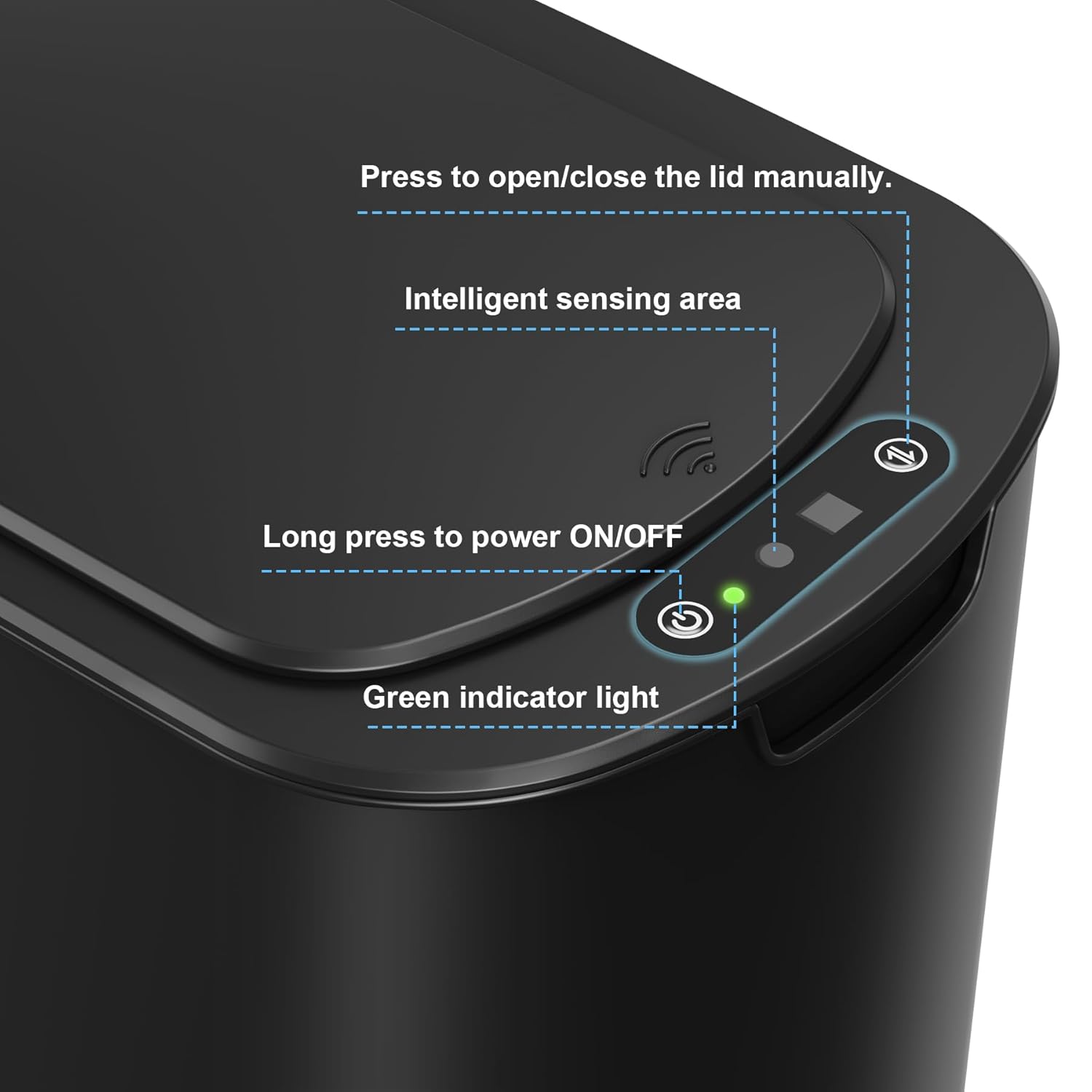 • Touchless Trash Can: Utilizing advanced infrared technology, its lid opens when your hand or any object is detected in the sensing area, eliminating the need for direct contact. Particularly beneficial for individuals with mobility challenges, the automatic functionality surpasses foot pedal options. Requires 2 AA batteries (not included)
