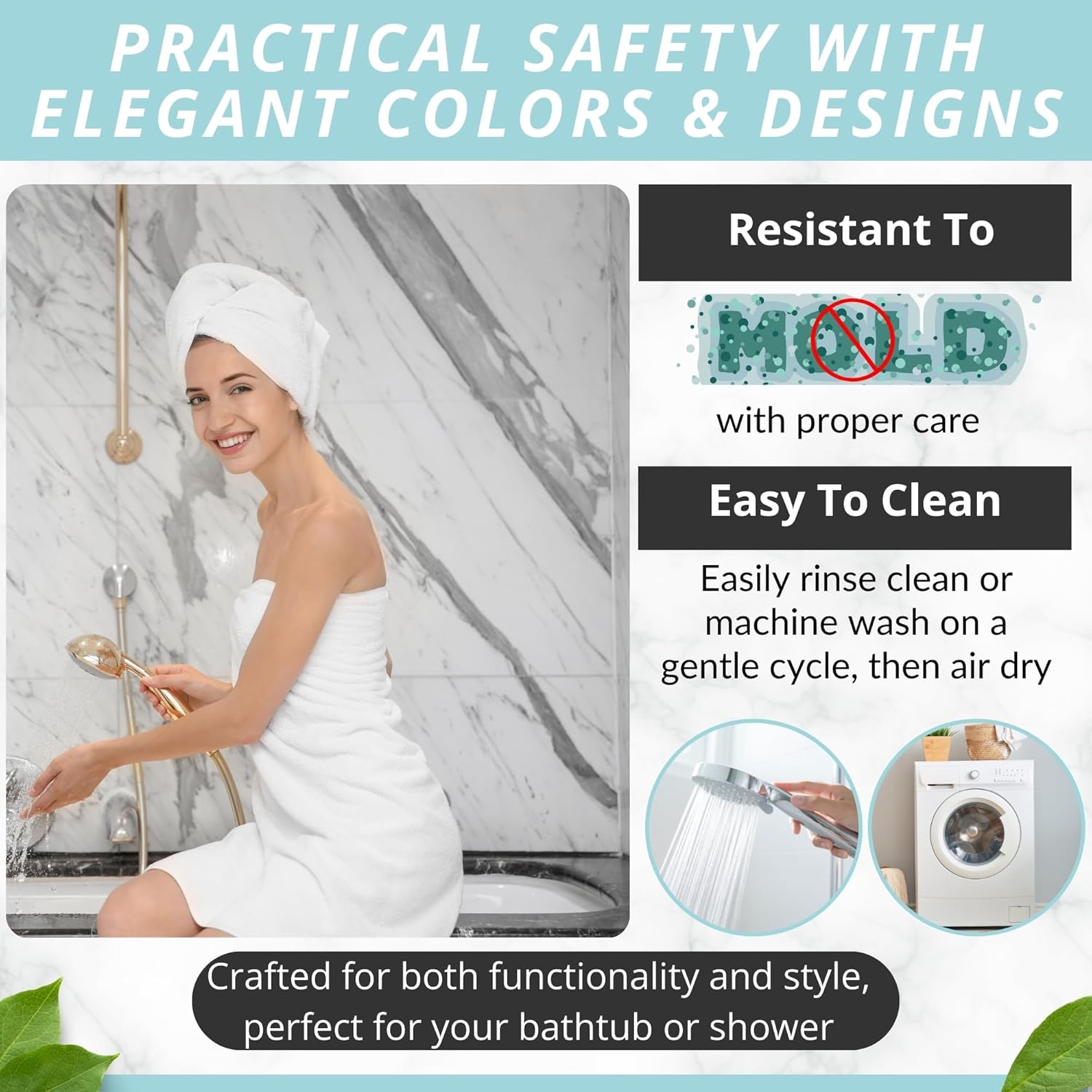 • DURABLE HIGH-QUALITY MATERIAL Crafted from durable safe PVC materials to withstand daily use and maintain quality. Resistant to wear and tear, ensuring longevity and continued effectiveness and safety (Suitable for use in smooth non-textured bathtubs, showers, only)