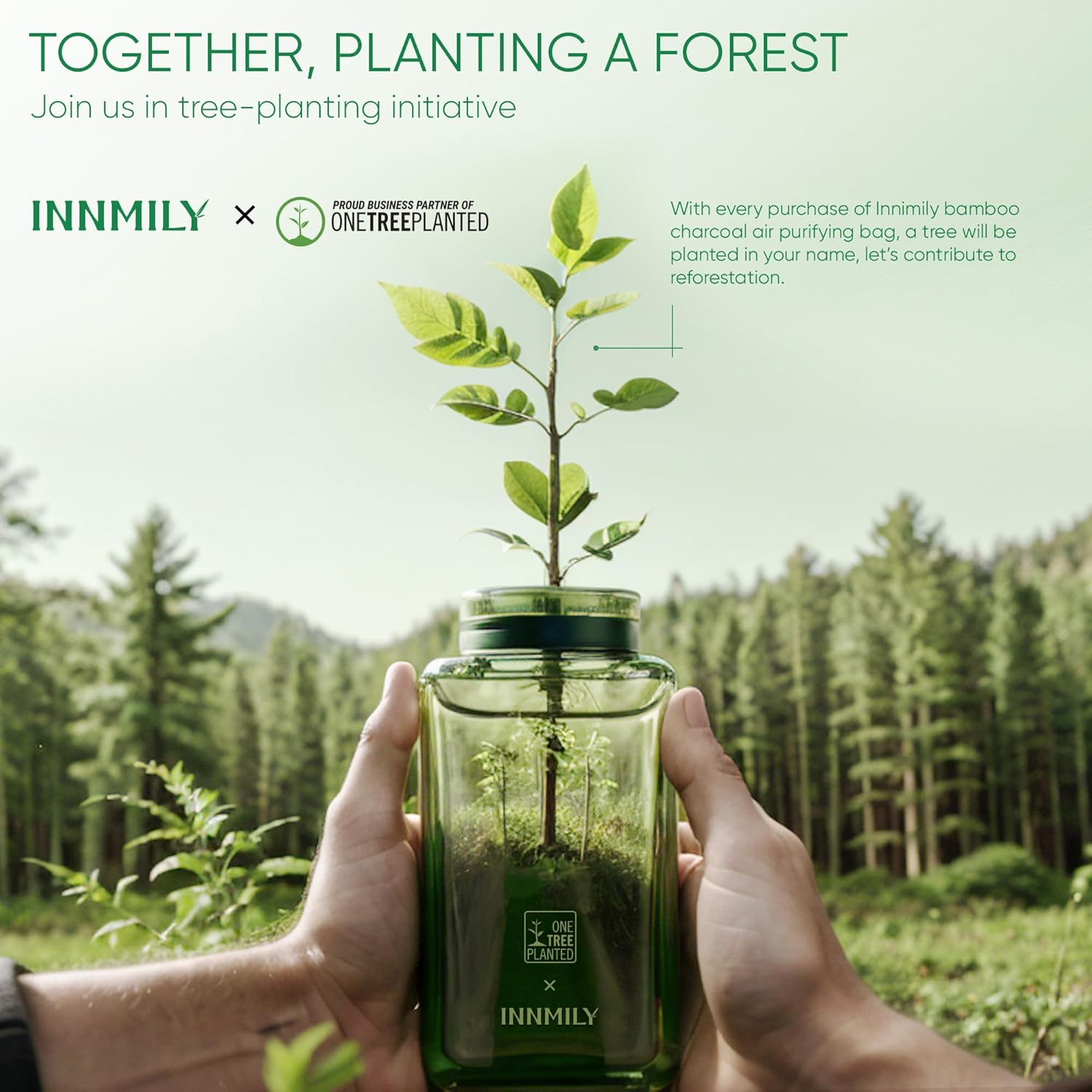 • TOGETHER, PLANTING A FOREST - We invite you to join us in tree-planting initiative - every purchase of Innimily bamboo charcoal air purifying bag, a tree will be planted in your name, let’s contribute to reforestation and environmental responsibility. Natural solution that not only captures odors but also contributes to sustainability. Innmily bring nature and fresh air, we offer no question asked money-back guarantee if you were not satisfied with the moisture absorber and odor eliminator