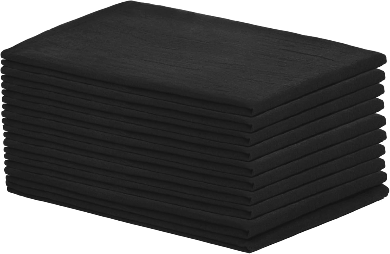 Organic Cotton Black Tea Towels - 100% Cotton, 10-Pack, Reusable and Washable Black Flour Sack Towels for Kitchen - Extra Large 27"x27", Durable Black Dish Towels with Hanging Loop (Black)