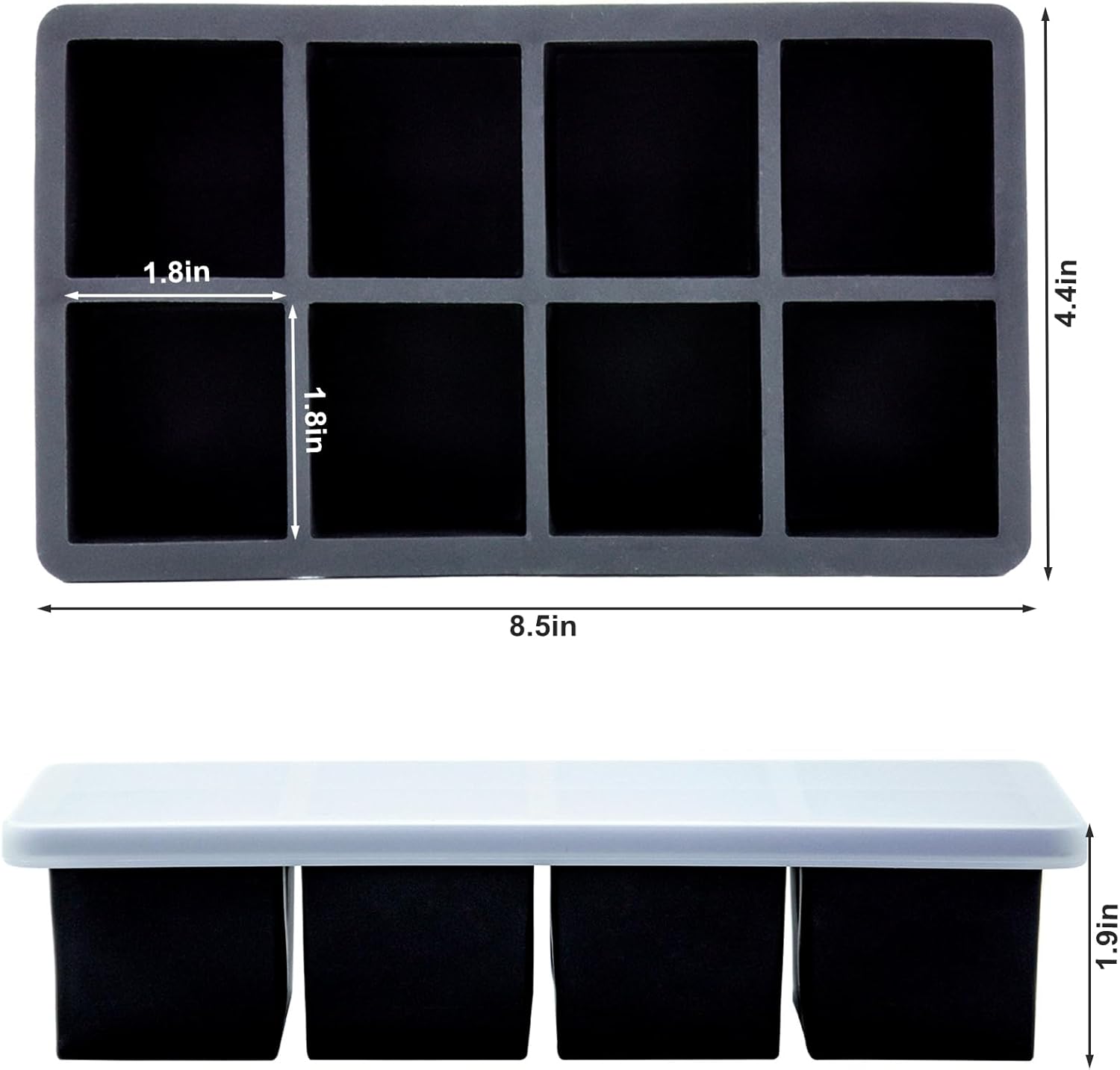 • Large Square Ice Cubes:Square ice tray allows you to make 8 large 2 inch ice cubes each time.With this perfect size and classic shapes, big ice melts/dilutes more slowly,keep yours drinks tasting better, for longer.Use them to chilling your Old Fashioned,Scotch,Bourbon, Blended Whiskey or Craft Cocktails.