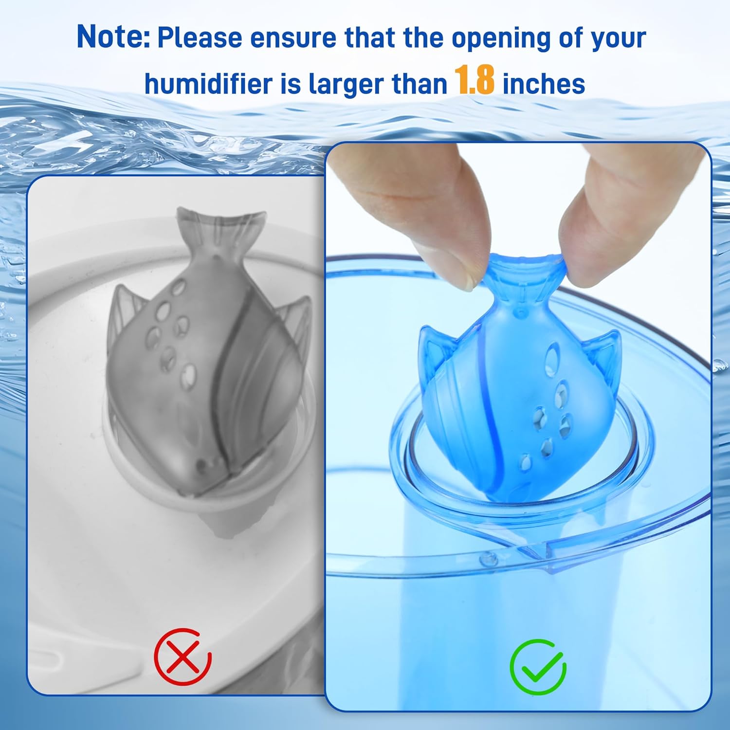 • π—–π—’π— π—£π—”π—§π—œπ—•π—Ÿπ—˜ π— π—’π——π—˜π—Ÿπ—¦ - The versatile humidifier cleaning fish is suitable for almost all home humidifiers, vaporizers and steamers including evaporative humidifiers, ultrasonic humidifiers, cool mist humidifiers and warm mist humidifier. Warm tips: The opening diameter of the humidifier should be at least 1.8 inches, please check if the opening of your humidifier is large enough. Meanwhile, it can be used in general purpose humidifiers with a tank capacity of 1 gallon and above